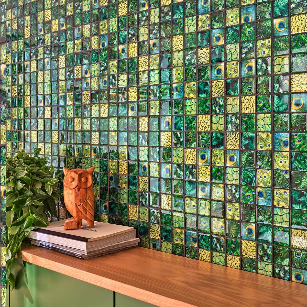 Mosaico De Cristal Azulejos Peafowl Verde