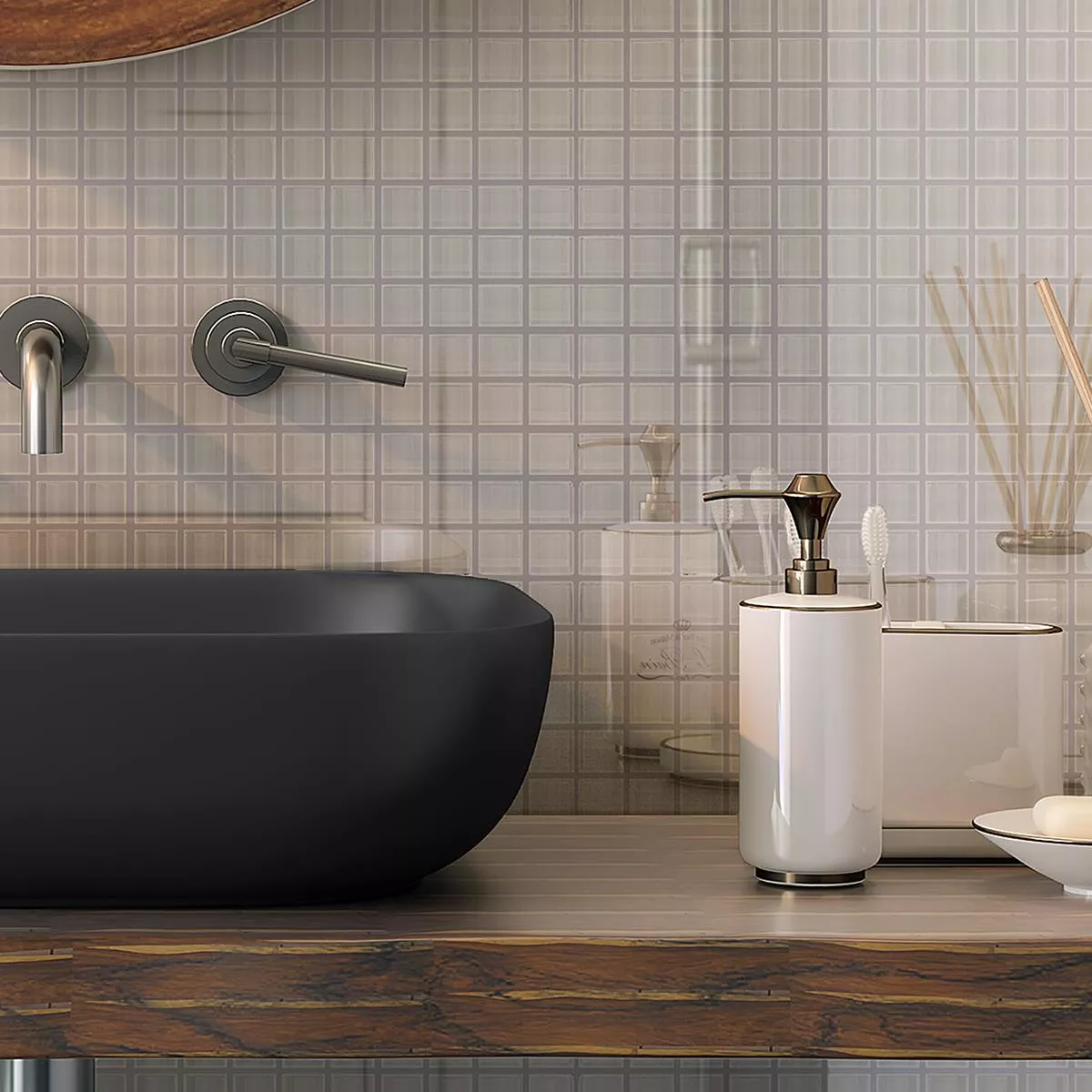 Cada baldosa y cada mosaico tienen diferentes requisitos de recorte, colocación y procesamiento debido a las características individuales del material y las condiciones de uso. Solicite a un experto local la colocación correcta y segura de sus mosaicos o baldosas. No somos responsables por el uso no profesional y la mano de obra defectuosa de los materiales de construcción.