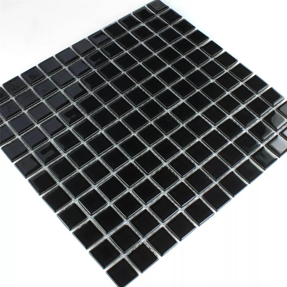 El mosaico de vidrio Tivoli en color negro intenso representa una elegancia sencilla y un diseño moderno. Con su superficie brillante, crea sofisticados reflejos de luz y confiere a cada estancia un aspecto noble.
