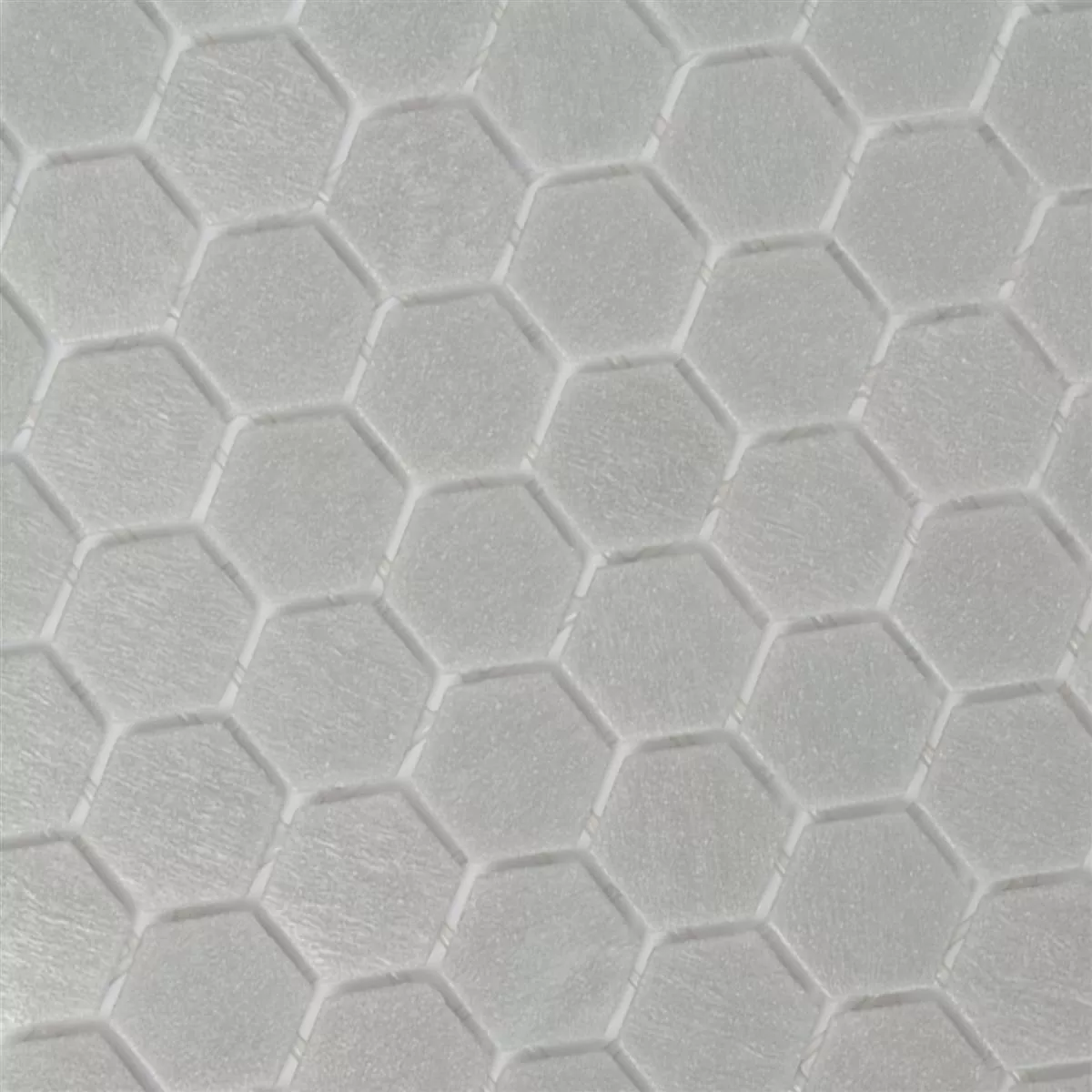 Aunque son muy resistentes, estos mosaicos de vidrio son impresionantes. Su acabado mate crea un complejo juego de luces y sombras, y su diseño hexagonal añade un toque de geometría moderna a cualquier estancia.