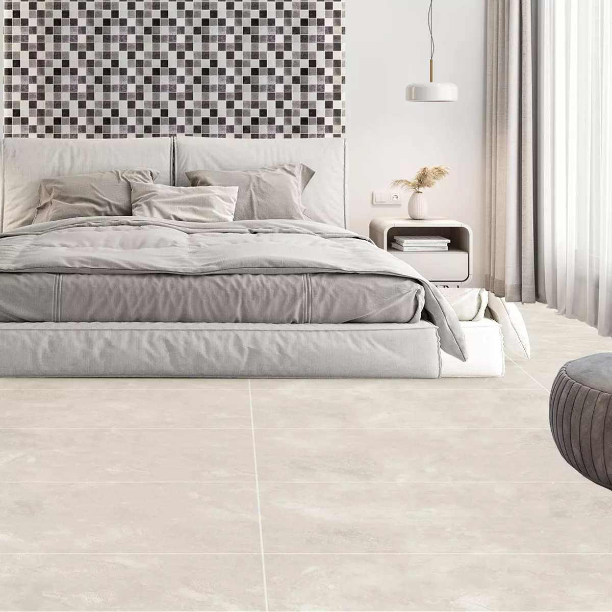 Las baldosas Cortina en color crema combinan un aspecto moderno de hormigón con una elegancia atemporal. En el generoso formato de 60x120 cm, confieren a cada habitación un aspecto espacioso y de alta calidad.