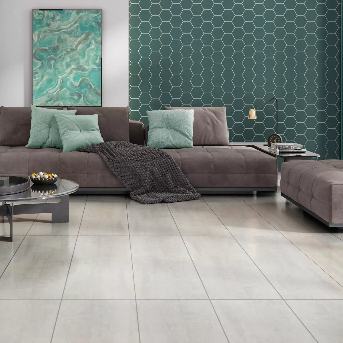 Azulejos de porcelana que han sido pulidos mediante un proceso específico. Sus superficies están pulidas, pero no completamente, lo que les otorga un aspecto natural que es parcialmente brillante y parcialmente mate.