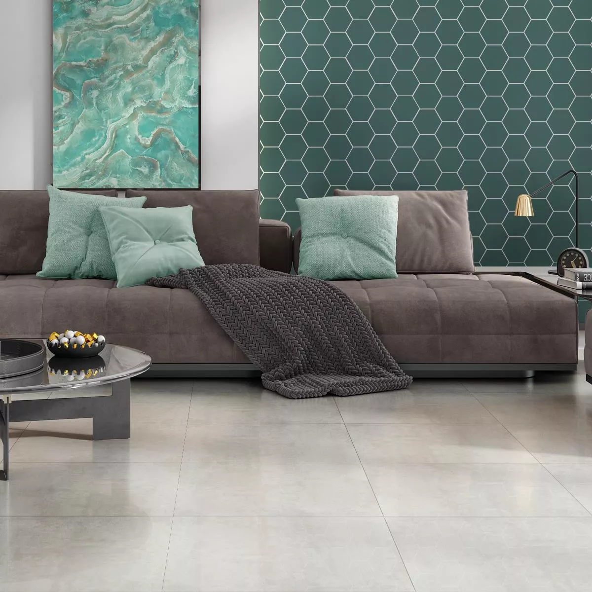Azulejos de porcelana que han sido pulidos mediante un proceso específico. Sus superficies están pulidas, pero no completamente, lo que les otorga un aspecto natural que es parcialmente brillante y parcialmente mate.