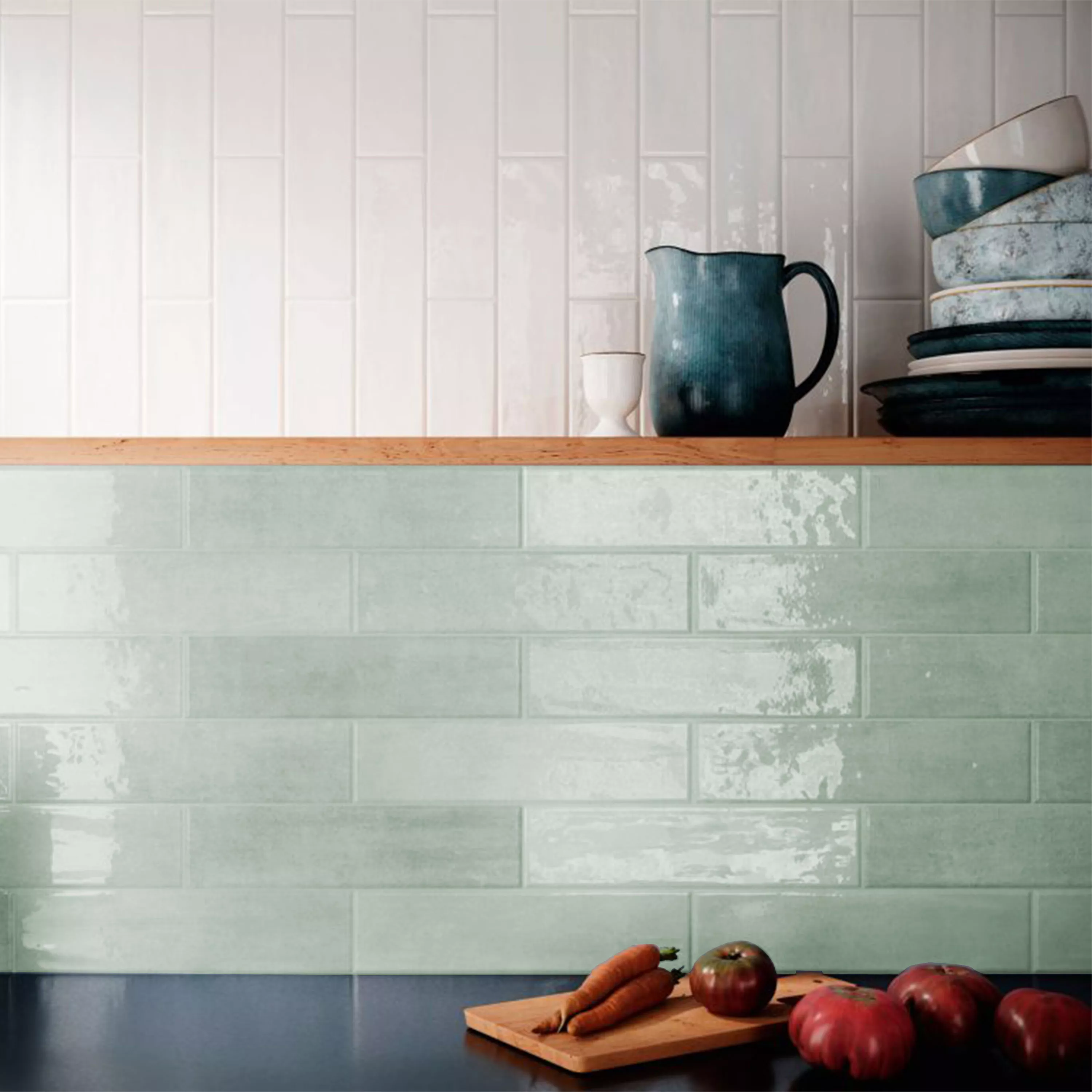 Dale a tus paredes un toque fresco de naturaleza con nuestros revestimientos Tropea en verde brillante y estructura ondulada. Estos azulejos rectangulares esmaltados de 7,5x30 cm y 8,4 mm de grosor aportan una estética vintage a tu hogar. La superficie ondulada y brillante aporta a sus habitaciones un dinamismo sutil y crea un ambiente animado.