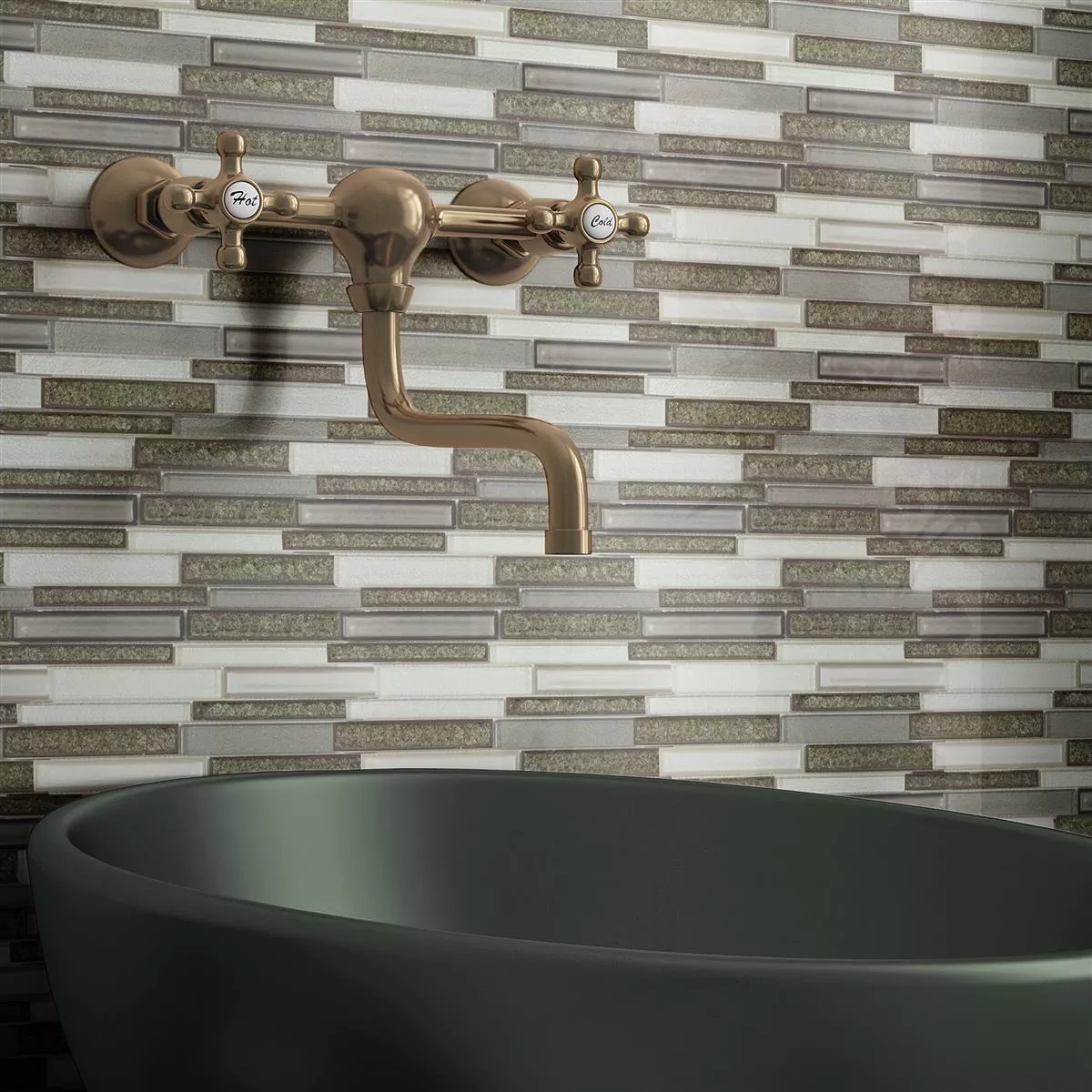 Con el mosaico de piedra natural de vidrio Crystal Springs Brick Grey no sólo aportarás una estética moderna a tus habitaciones, sino también una versatilidad atemporal. Cree un espacio caracterizado por una elegancia elegante y un diseño contemporáneo.