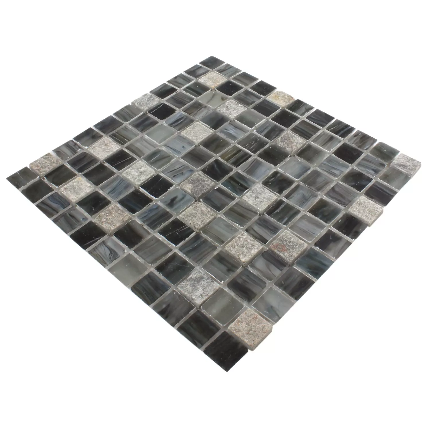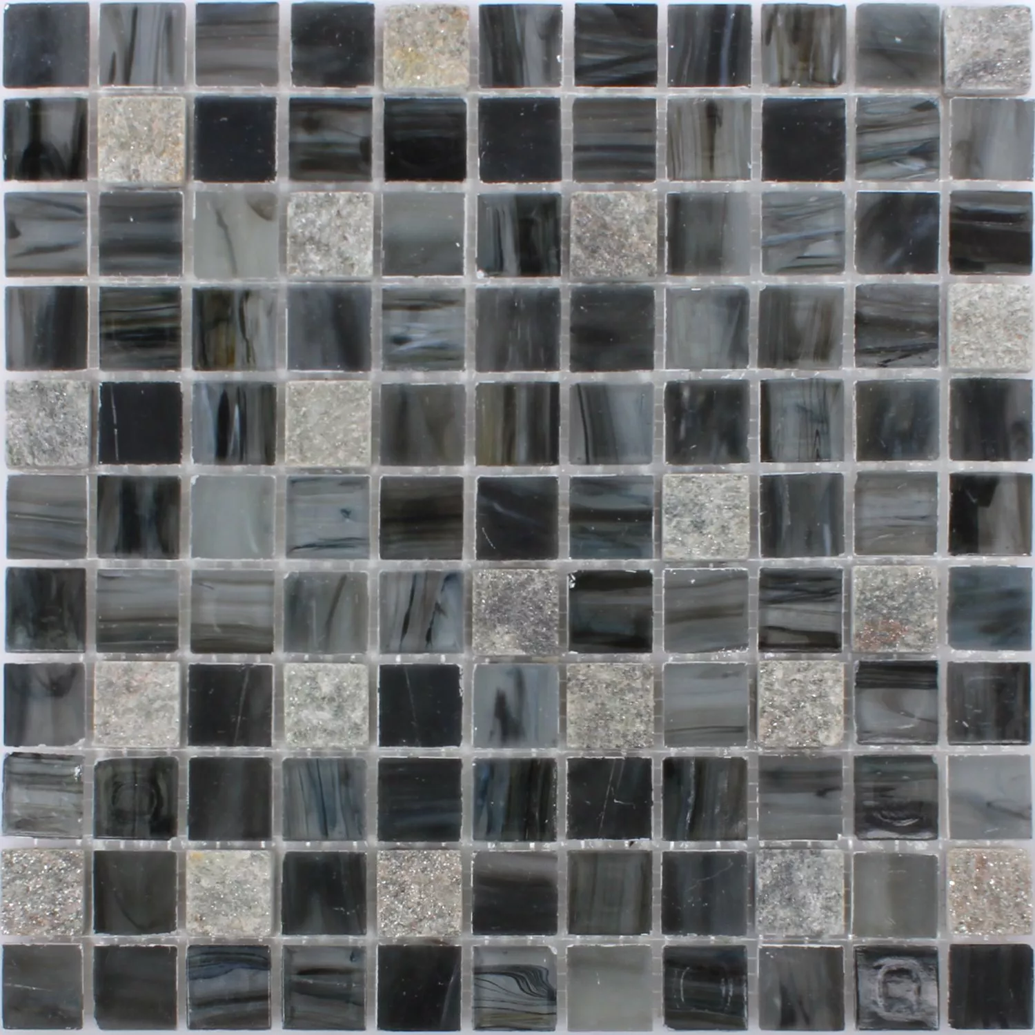 Vidrio Piedra Natural Mosaico Daily Rush Negro Gris