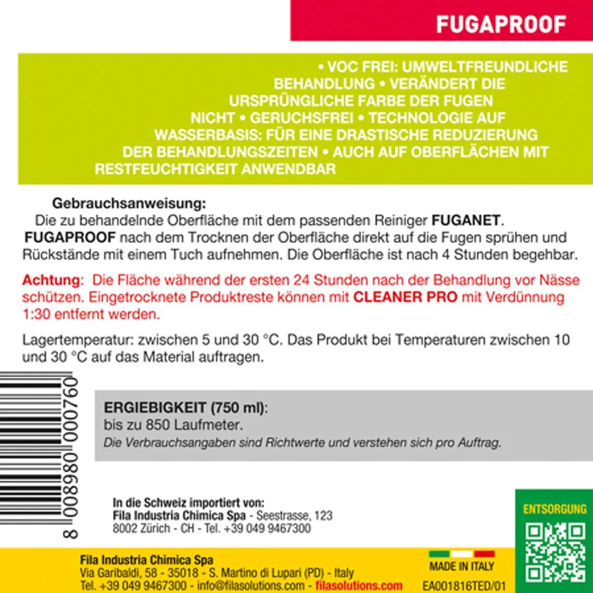 Protect the surface from moisture for the first 24 hours after treatment. Dried product residues that were not removed during application can be removed with EASYWASH or CLEANER PRO diluted 1:30.