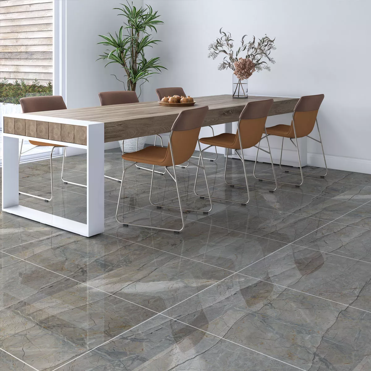 Floor Tiles Ancona Marble Optic Grey Polished Glossy 60x120cm