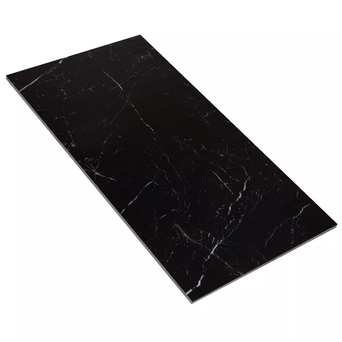 Floor Tiles Cardiff Marble Optic Polished Black White 60x120cm