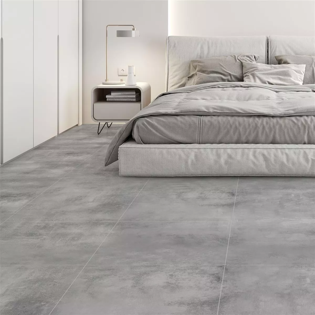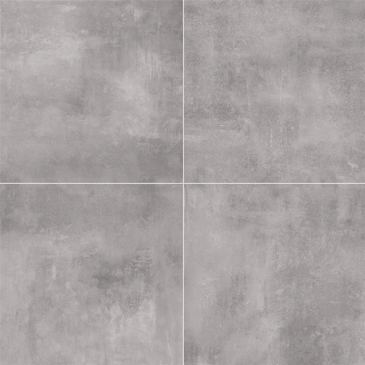 The Castlebrook stone look light gray floor tile 60x60cm combines style and durability in a generous format. The matte finish and glazed coating make these tiles ideal for indoor use, including wet areas such as bathrooms and showers.