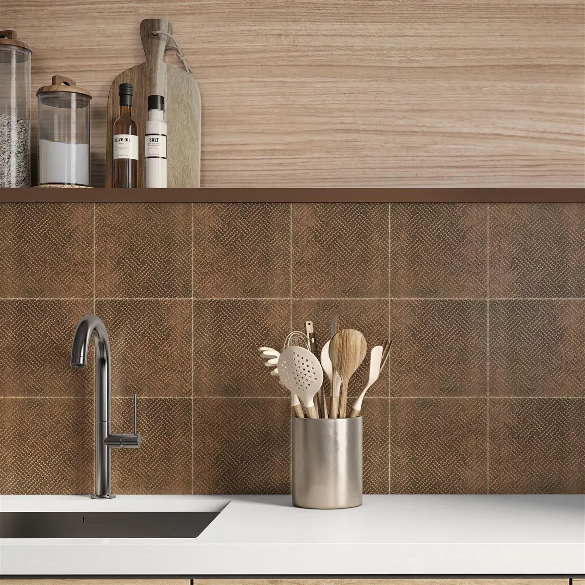 The elegant copper color, combined with the high-quality porcelain stoneware, gives the tiles a timeless vintage look. Thanks to the matt surface, they are perfect for areas with underfloor heating and at the same time offer slip resistance, making them particularly suitable for bathrooms, wet areas, kitchens, living rooms and showers.