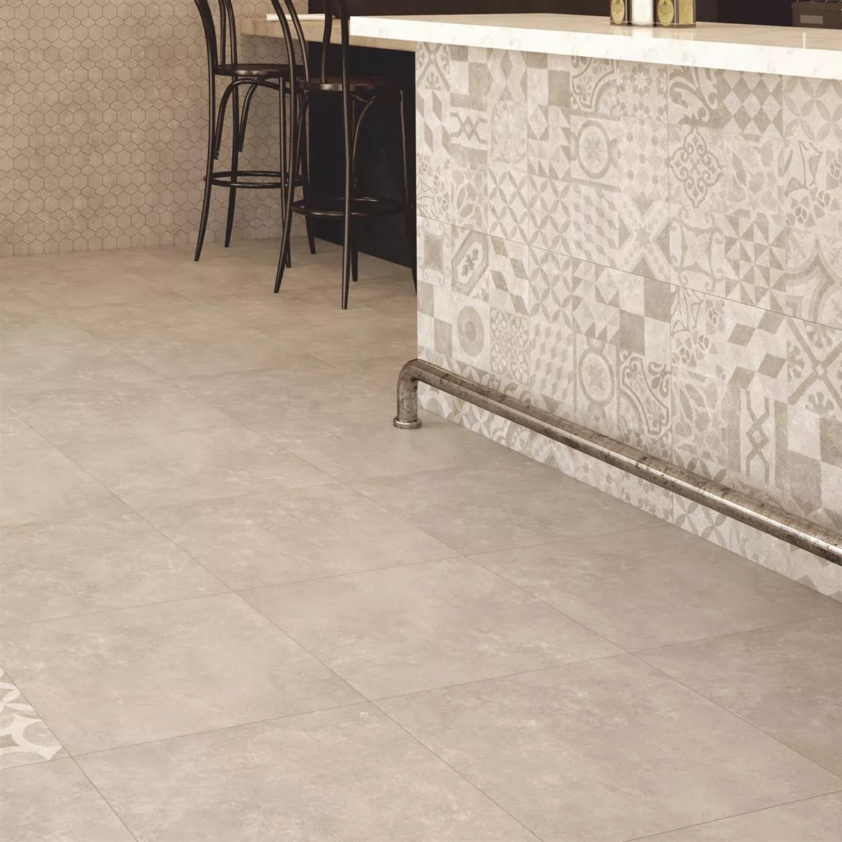 The trendy floor tiles Hayat are made of exclusive porcelain stoneware. They can be optimally complemented by fine wall tiles in shades of grey, bone and noce, so that an entire room is impressive with unique tiles from floor to ceiling. Thanks to the fine look of the Hayat porcelain stoneware floor tiles, every room becomes an architectural experience. In addition to simple wall tiles in the popular tones of Hayat floor tiles, designer wall tiles with patterns and motifs can also be an ideal complement. Because the Hayat porcelain stoneware floor tiles are designed in light tones, they ensure a modern spaciousness in every room. Therefore, they are not only often installed in private rooms such as kitchens, dining rooms and party rooms, but also in public areas such as cafés and bars. Because of their matt surface, they are easy to care for, so that they look like they did on the first day, even after decades.