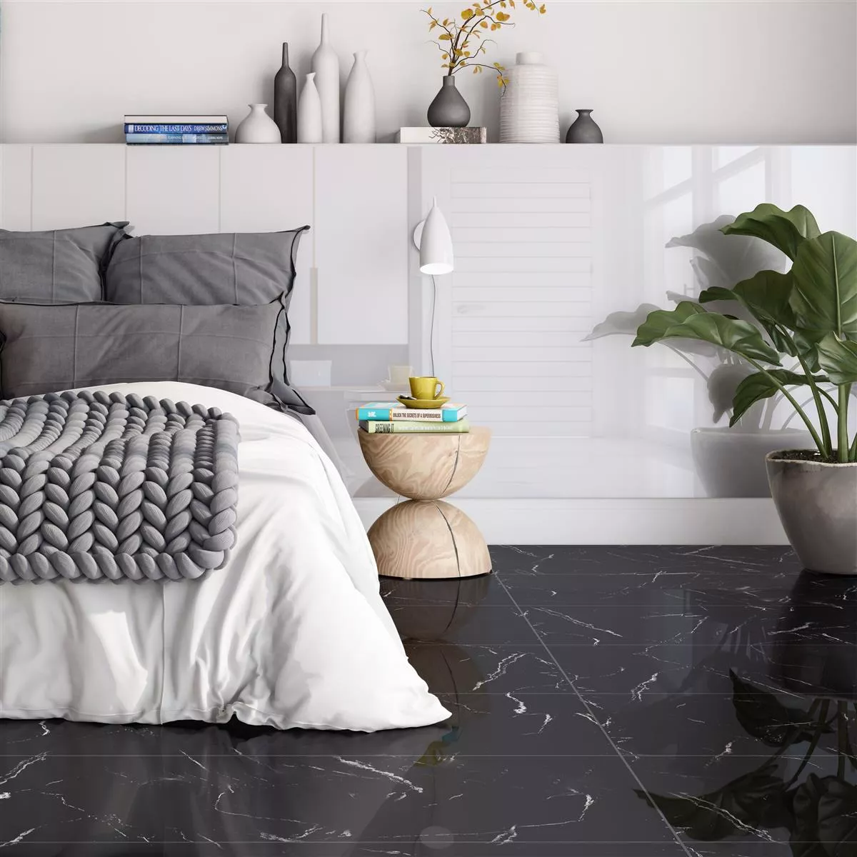 Give your rooms a luxurious flair with the "Louisburg" tile in elegant black. This porcelain stoneware tile combines the elegance of a marble look with robust properties and is ideal for versatile applications.