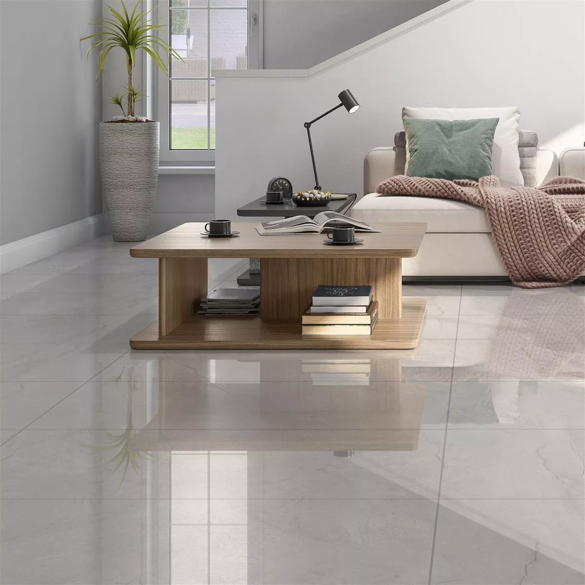 The Pangea floor tile in the elegant color ivory brings noble charm to your living space. Made from high-quality porcelain stoneware, this tile impresses with its polished surface with a noble marble look that gives every room a timeless and luxurious look.
