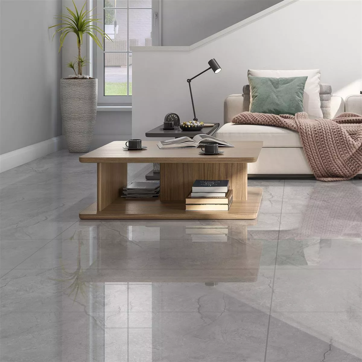 The Pangea floor tile in the elegant color silver sets stylish accents in your interiors. Made from high-quality porcelain stoneware, this tile offers a polished surface with an attractive marble look that gives every room a modern and luxurious look.