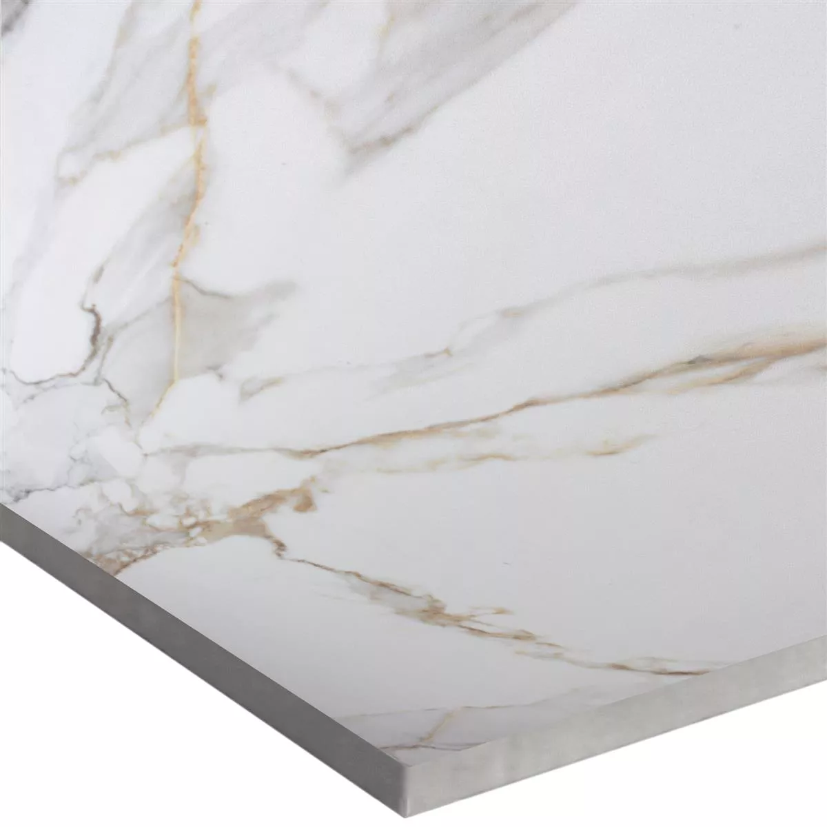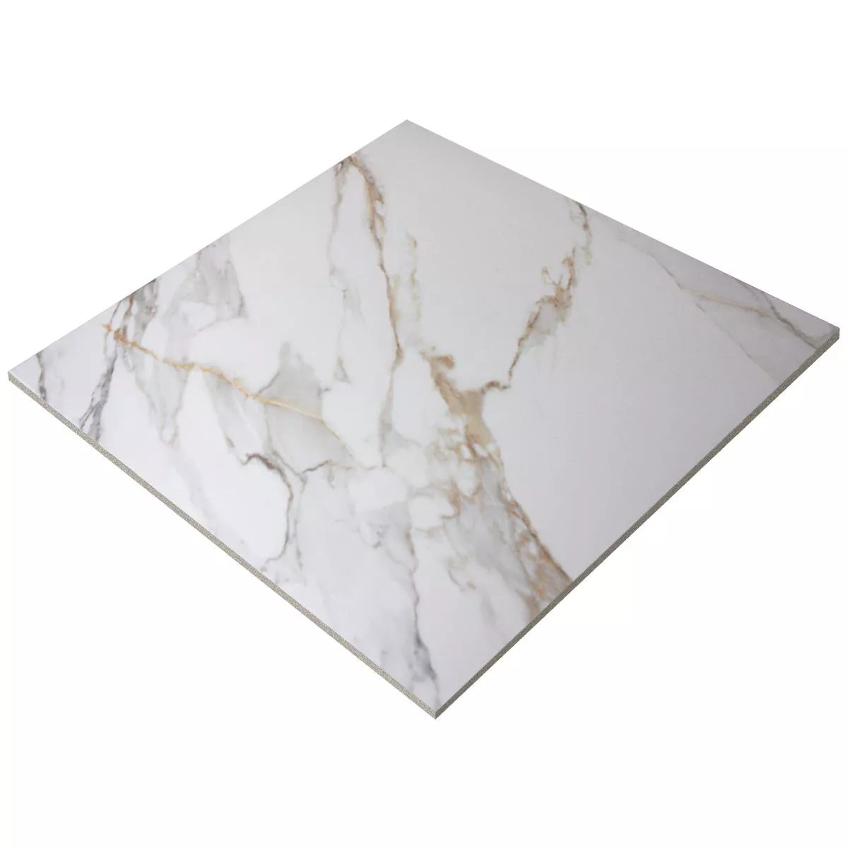 The Utah tile combines luxurious aesthetics with practical versatility and is the perfect choice for modern and elegant living spaces. In elegant gold and white tones, it provides a stylish marble and natural stone look that sets extraordinary accents and creates an upscale atmosphere in your home. This square floor tile made of high-quality porcelain stoneware impresses with both its visual impact and its excellent technical properties.