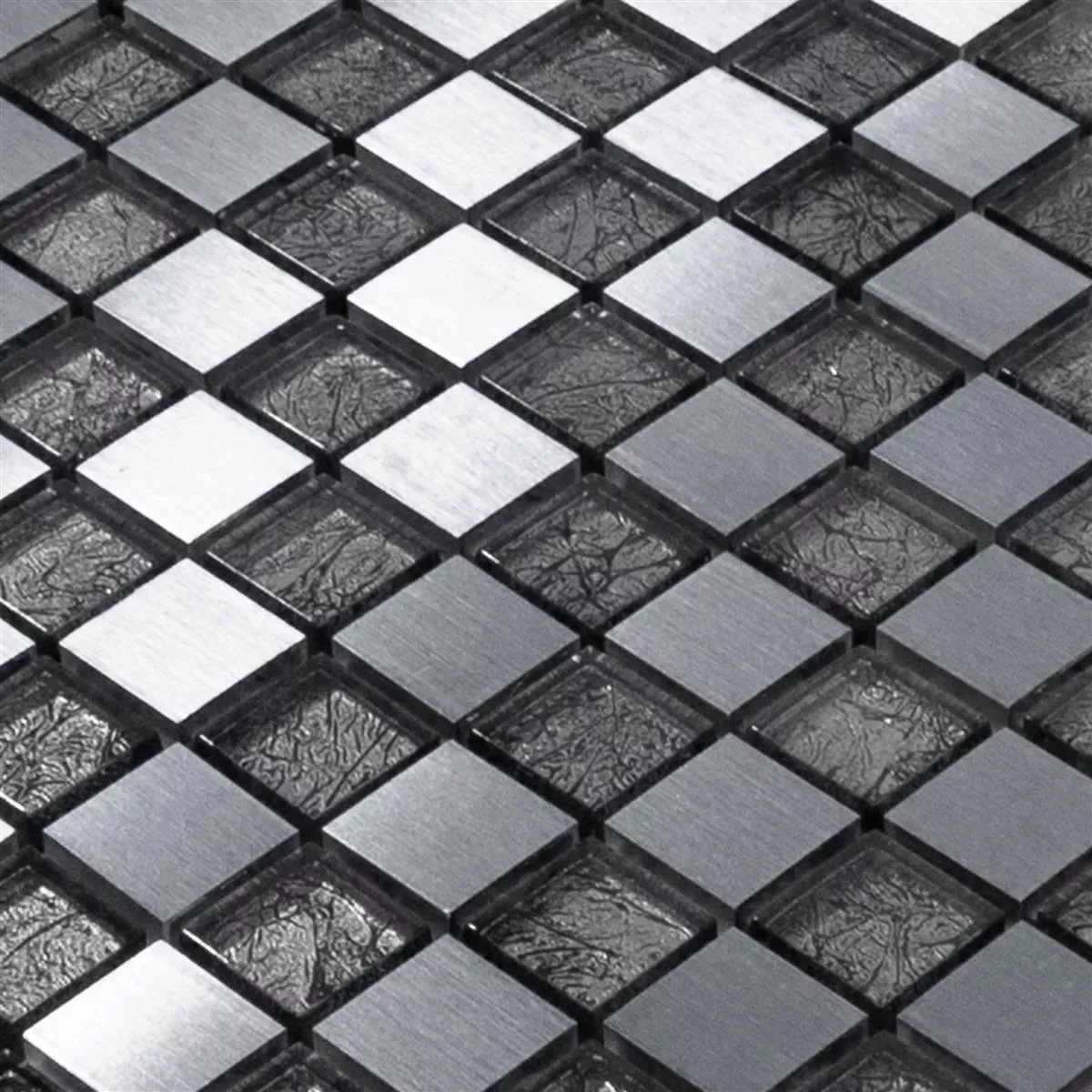 Glass Aluminium Mosaic Tiles Eldorien Silver-Grey
