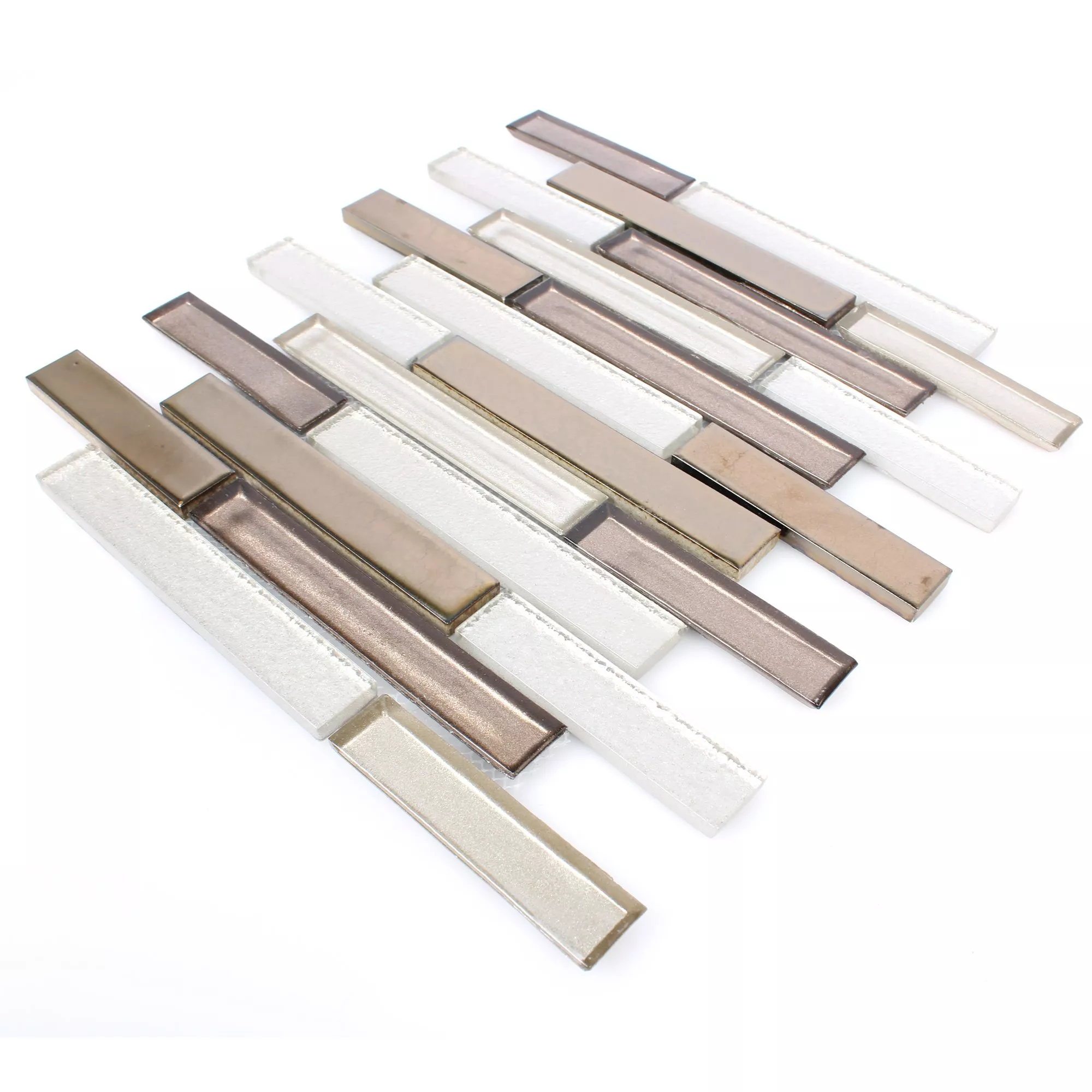 The search for the perfect tiles for your own home is often anything but easy. Tiles are often used for both indoor and outdoor use. Tiles that impress with both their excellent quality and an attractive design are guaranteed to give you pleasure for a long time and are therefore always the best choice. The surface pattern of the glass ceramic mosaic tiles Permoser in copper white is both matt and glossy and its mat size is 25 x 30 cm. The stone size of the glass ceramic mosaic tiles Permoser has the dimensions 23 x 98 - 23 x 148mm and the thickness is 8mm. The price of these tiles is EUR 10.50 per mat. After completing your order, the tiles will be delivered to your home within two to four working days.