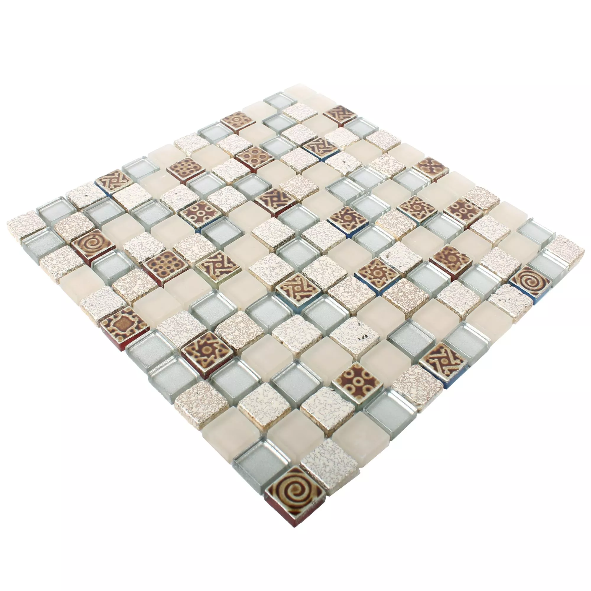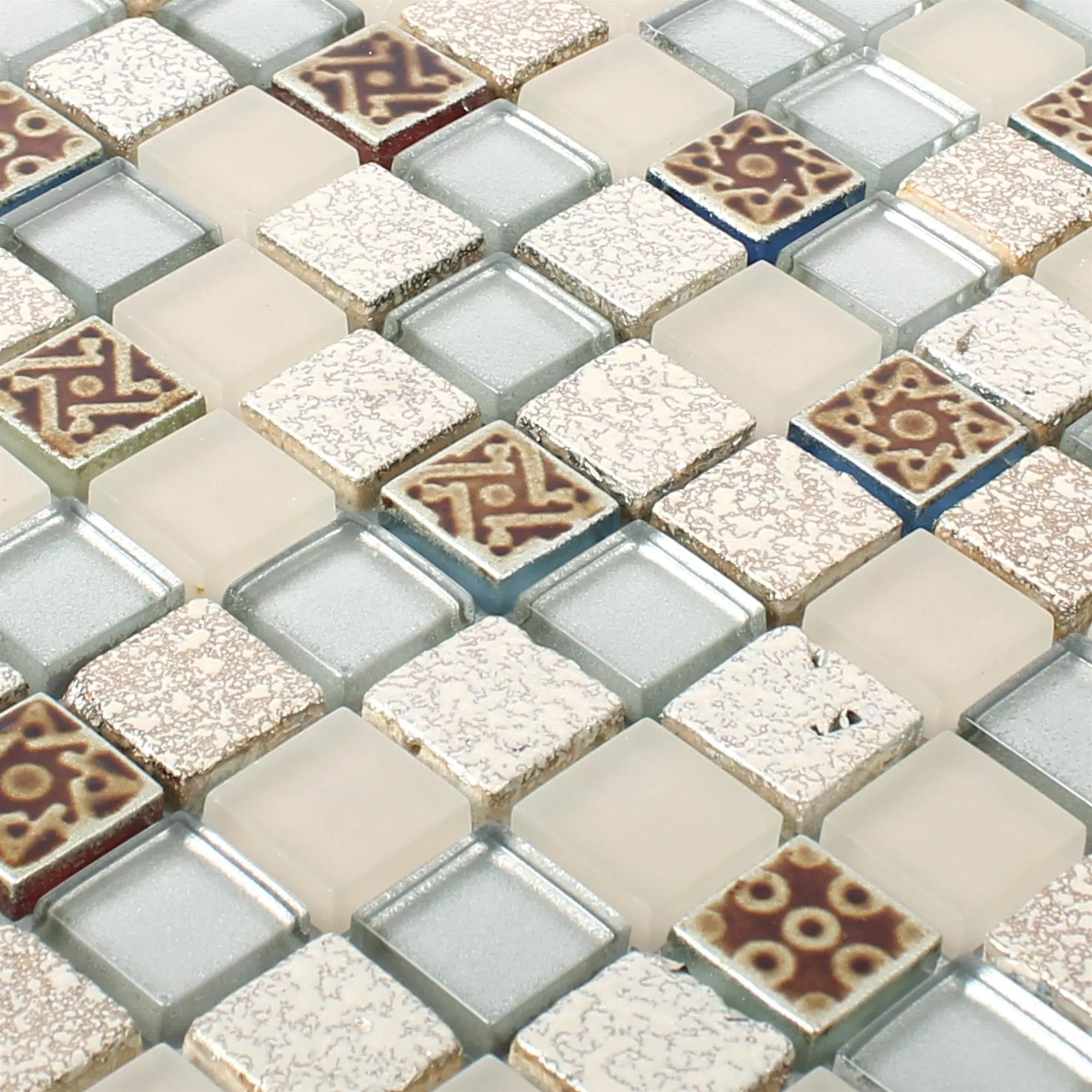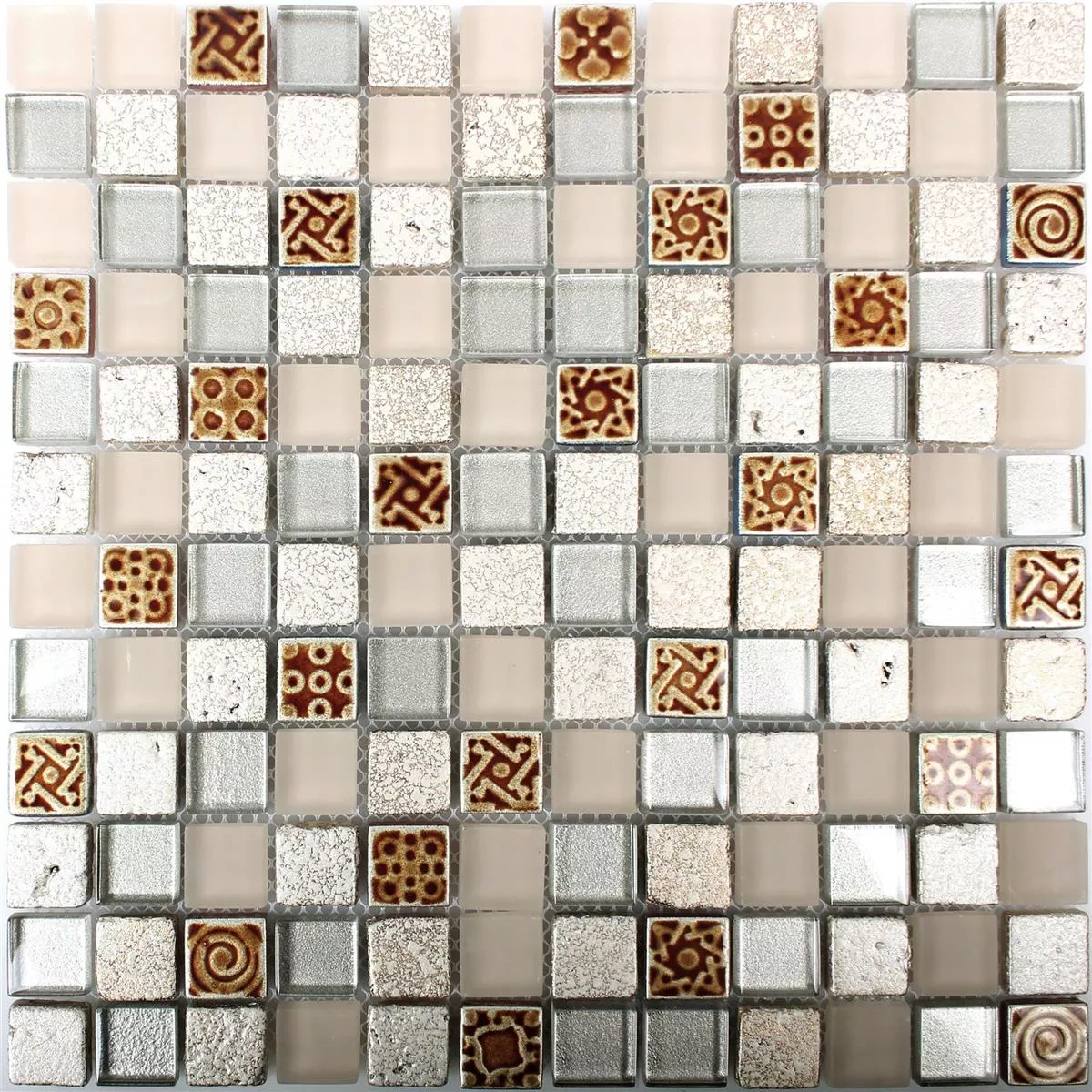 Glass Mosaic Natural Stone Tiles Kobold Beige Silver