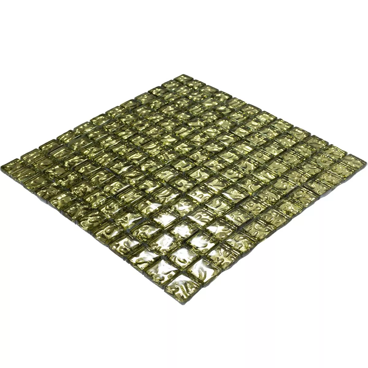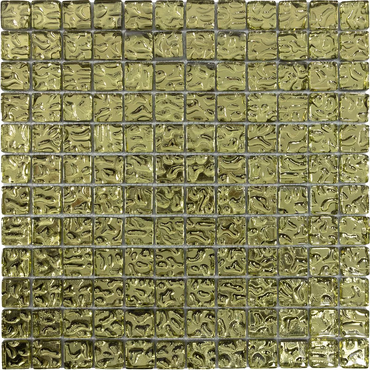Immerse yourself in pure elegance with our glass mosaic tiles Aquatic Gold. These square mosaic, wall and floor tiles with a stone size of 23x23mm give your interior a radiant gold touch. The shiny surface and a joint width of 2mm emphasize the luxurious look. With a thickness of 8mm, they not only offer aesthetics but also robustness.