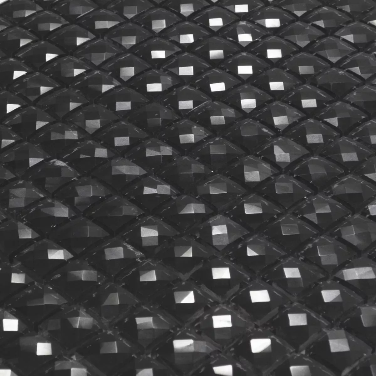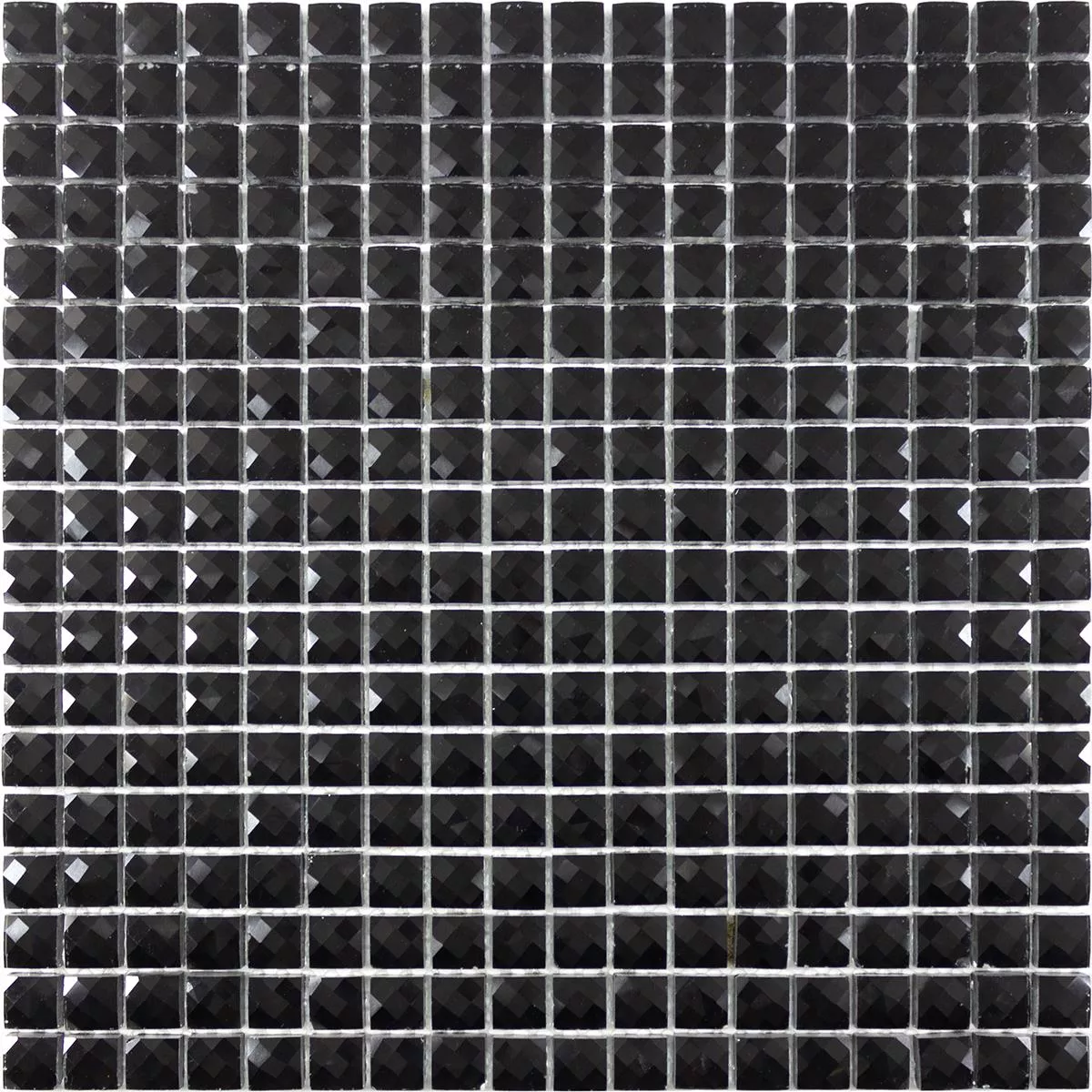 Glass mosaic tiles Black Diamond present timeless elegance. These square mosaic, wall and floor tiles with a stone size of 15x15mm give your interior a shiny, black brilliance. The special feature of being glued to a net ready for installation makes installation effortless. With a thickness of 8mm and a joint width of 2mm, they not only offer aesthetics but also frost resistance.