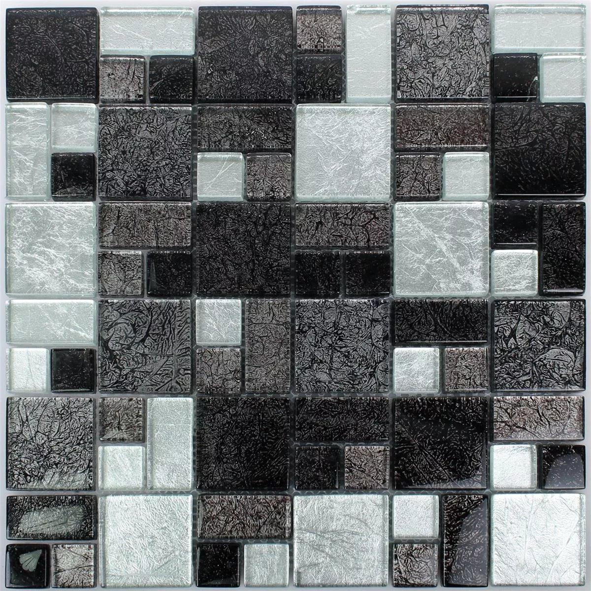 Glass Mosaic Tiles Curlew Black Silver 2 Mix