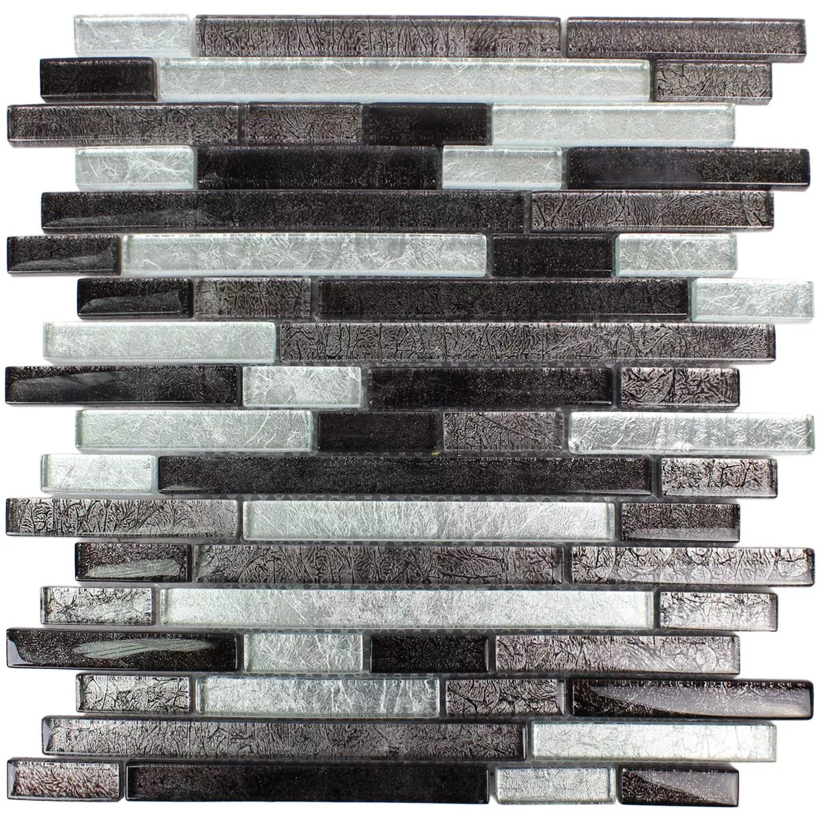 Glass Mosaic Tiles Curlew Black Silver Pattern