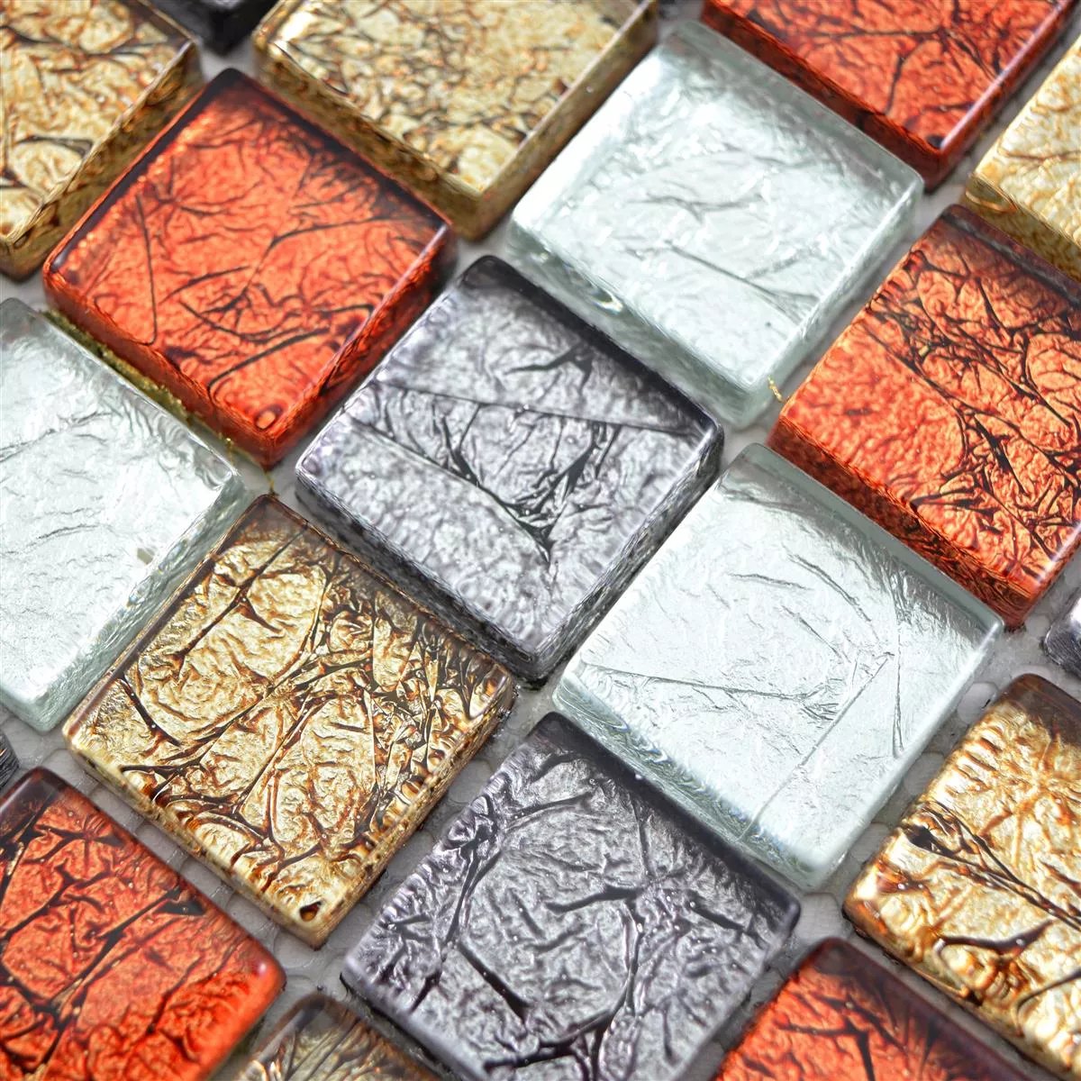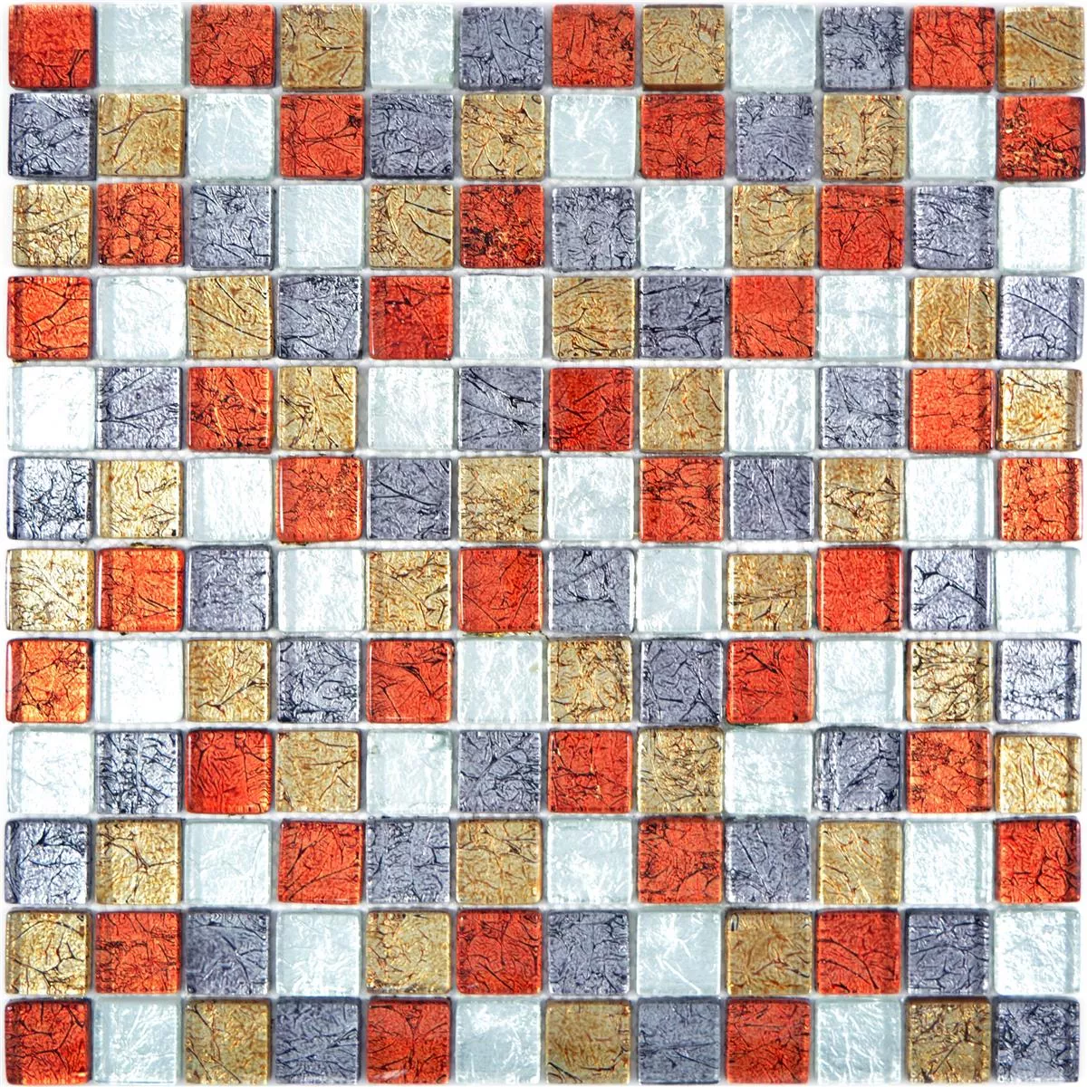 Glass Mosaic Tiles Curlew Red Brown Silver Square 23