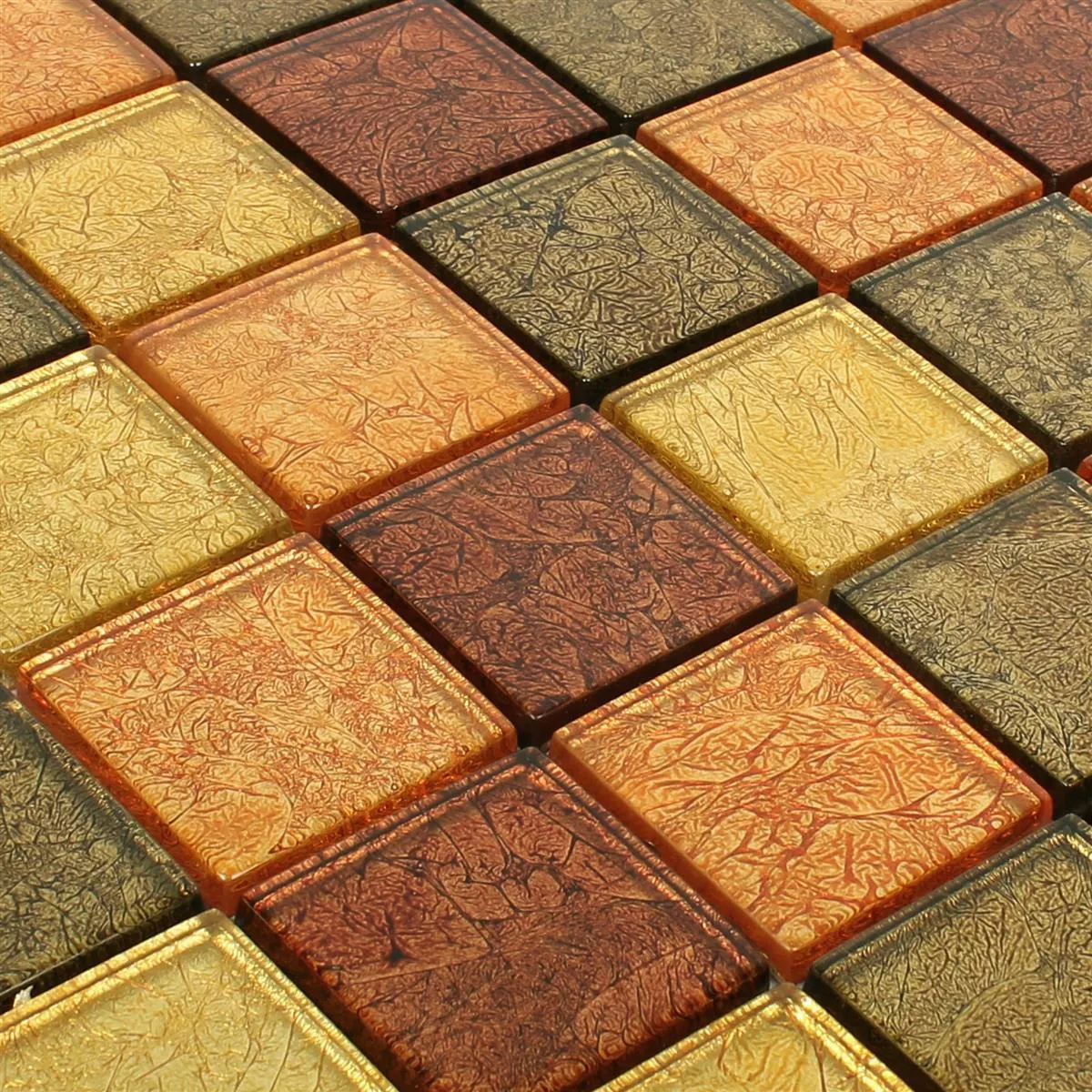 When buying the mosaic tiles, attention should be paid to the necessary number of square meters. The prices in the online shop are unit prices and are given per mat. The noble glass mosaic tiles can be laid in living rooms, for example, and have sufficient tread strength. The metallic appearance of the individual glass mosaics gives the tile that certain extra.