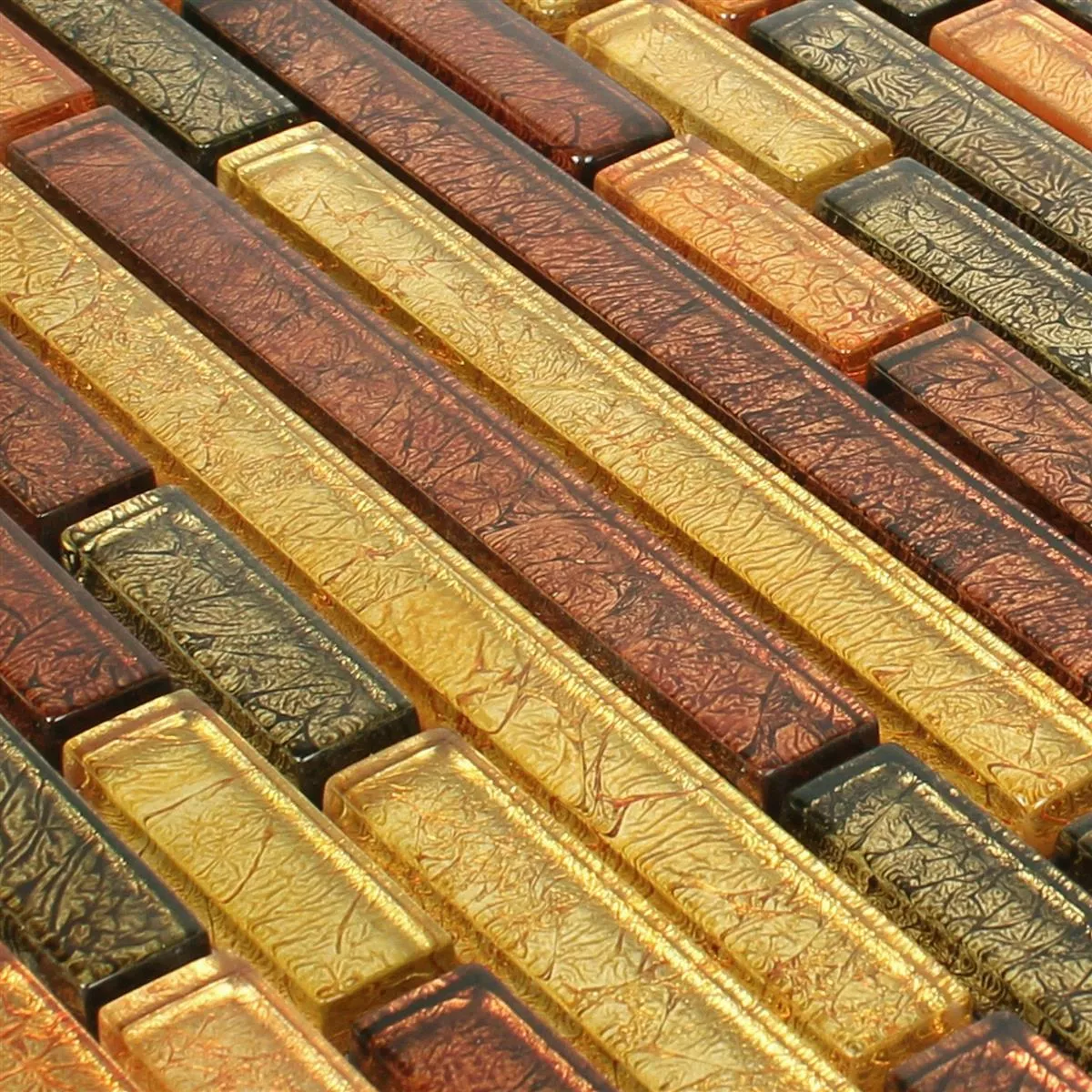 When buying the mosaic tiles, attention should be paid to the necessary number of square meters. The prices in the online shop are unit prices and are given per mat. The noble glass mosaic tiles can be laid in living rooms, for example, and have sufficient tread strength. The metallic appearance of the individual glass mosaics gives the tile that certain extra.