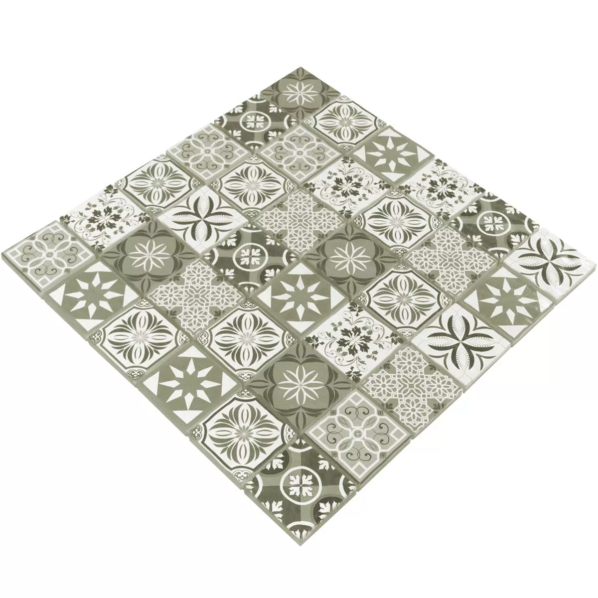 Glass Mosaic Tiles Magnolia Ornament Light Brown