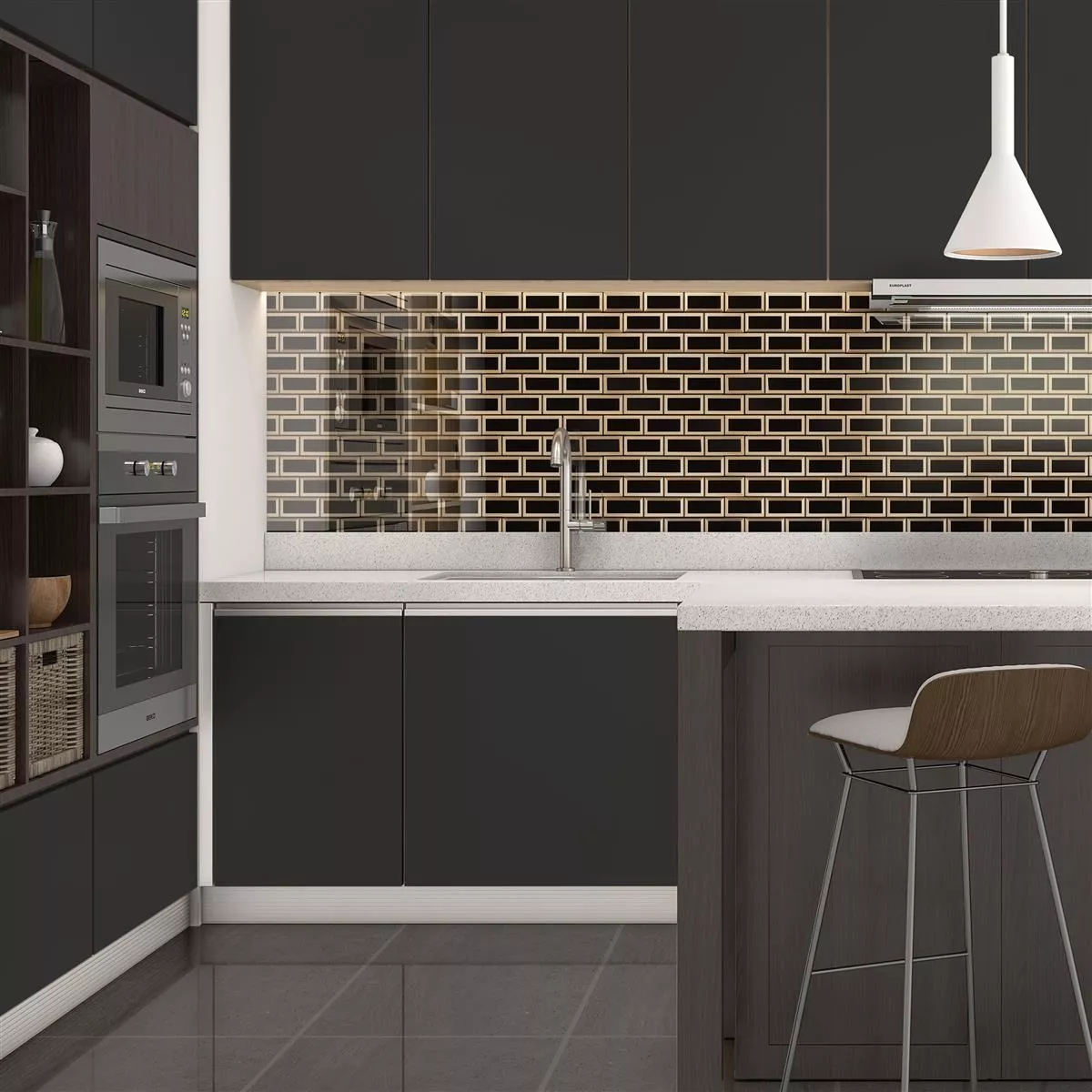 The glossy surface of the tiles gives the room an extra dimension and makes it appear larger. The light is reflected, creating a bright and lively atmosphere.