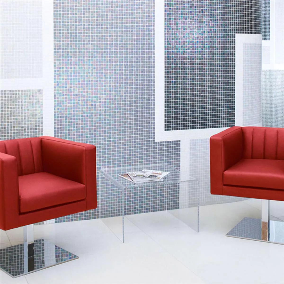 Shining Glass mosaic tiles are characterized by their frost-resistant Eco Glass, which is suitable for both indoor and outdoor use. This makes them an ideal choice for swimming pools, permanently wet areas, and even for use on backsplashes. They are also a perfect option for kitchens, where they can be used as wall tiles, backsplashes, and countertops.