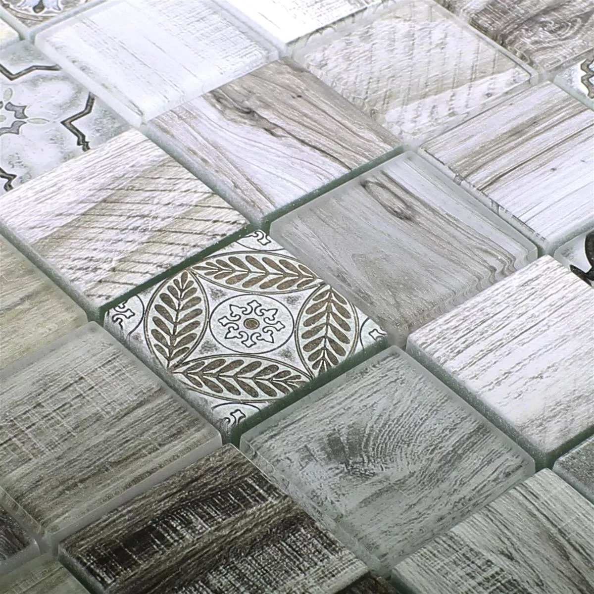 It looks like wood, but it's actually glass! We are talking about the Makarska glass mosaic tile. It is a wall tile made of glass, which has a beautiful wood look. The beige mosaic tile has a diverse pattern, so that the eye always sees something new.
