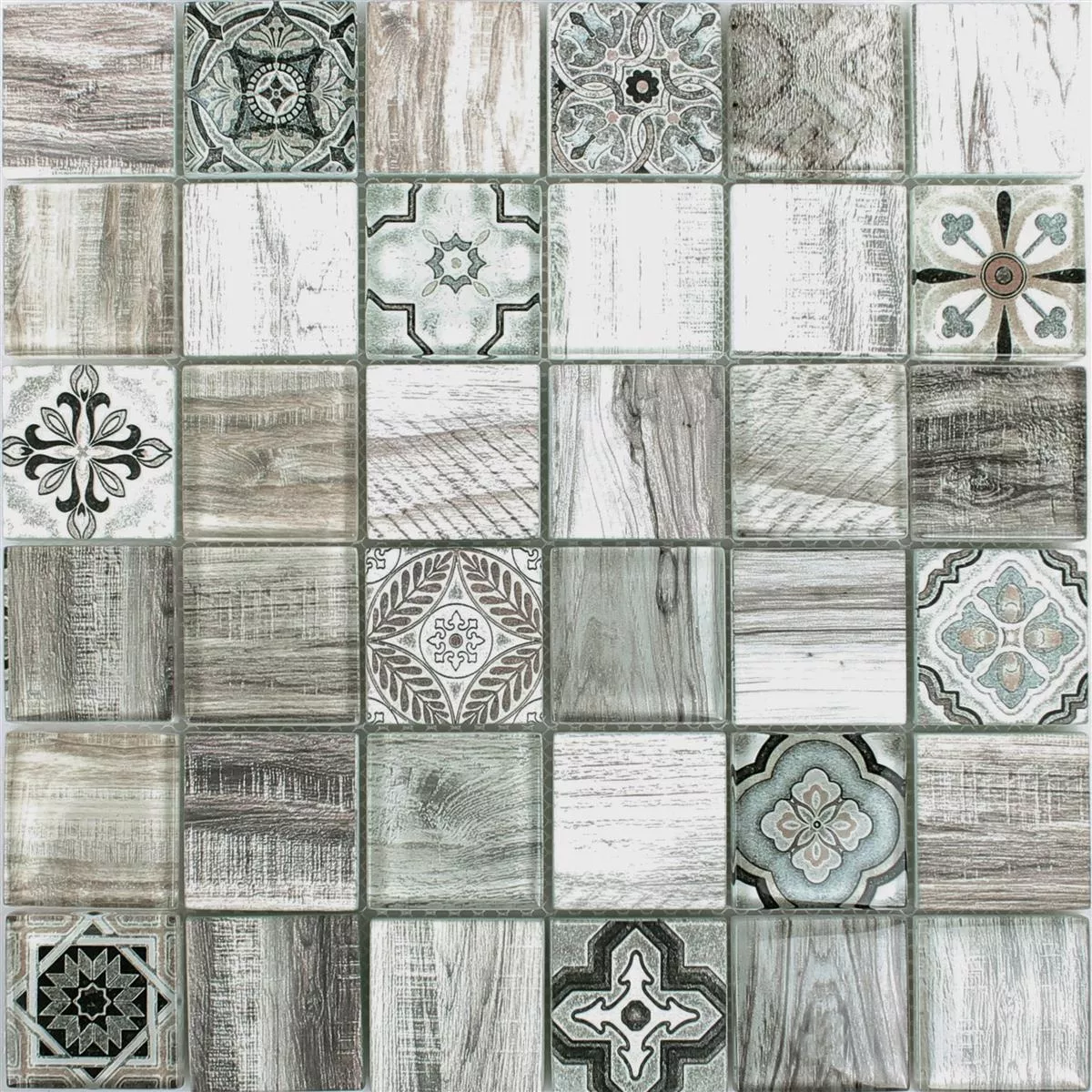 Very nice mosaic, some tesserae are opaque with design on the surface, others in glossy glass with the same design but printed on the bottom. Very nice effect. Punctual delivery and undamaged product.