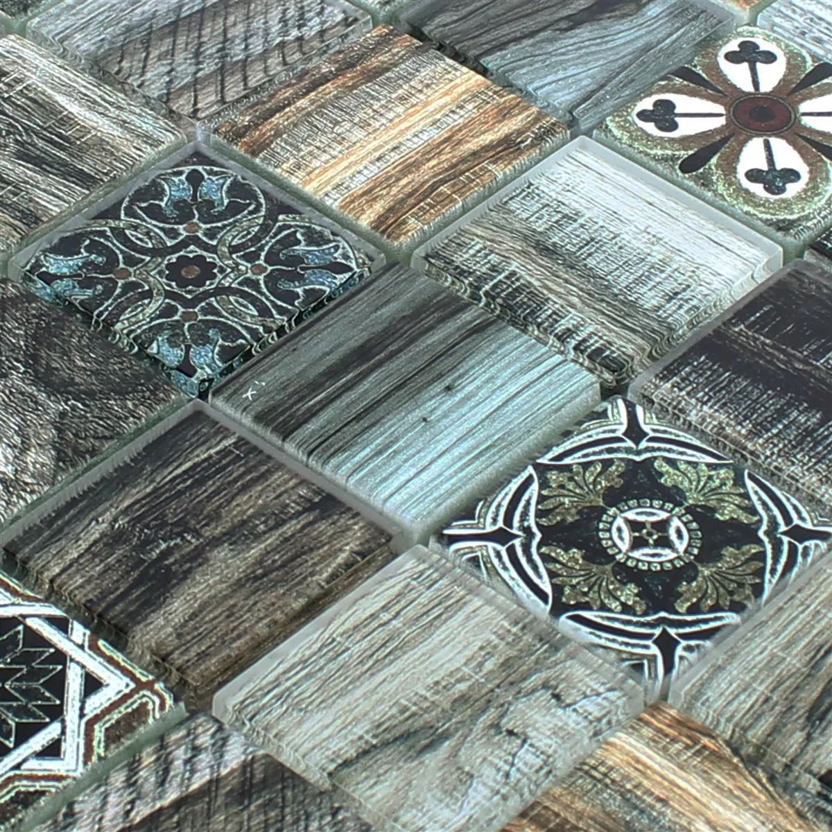 Glass Mosaic Tiles Wood Optic Makarska Brown Green