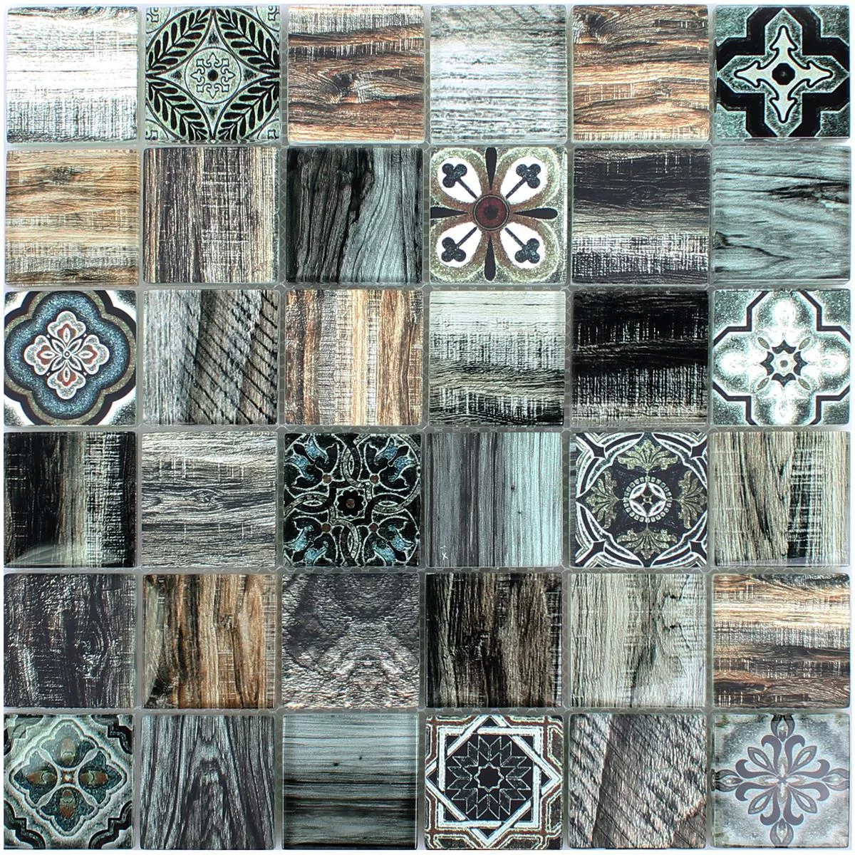 It looks like wood, but it's actually glass! We are talking about the Makarska glass mosaic tile. It is a wall tile made of glass, which has a beautiful wood look. The brown-green mosaic tile has a diverse pattern, so that the eye always sees something new.