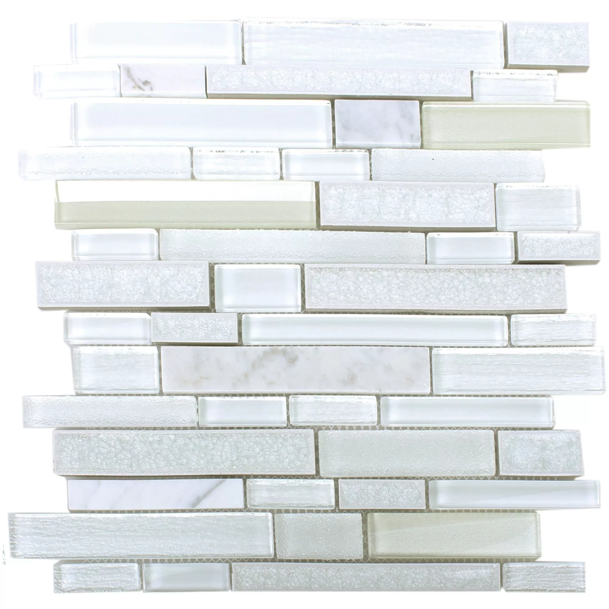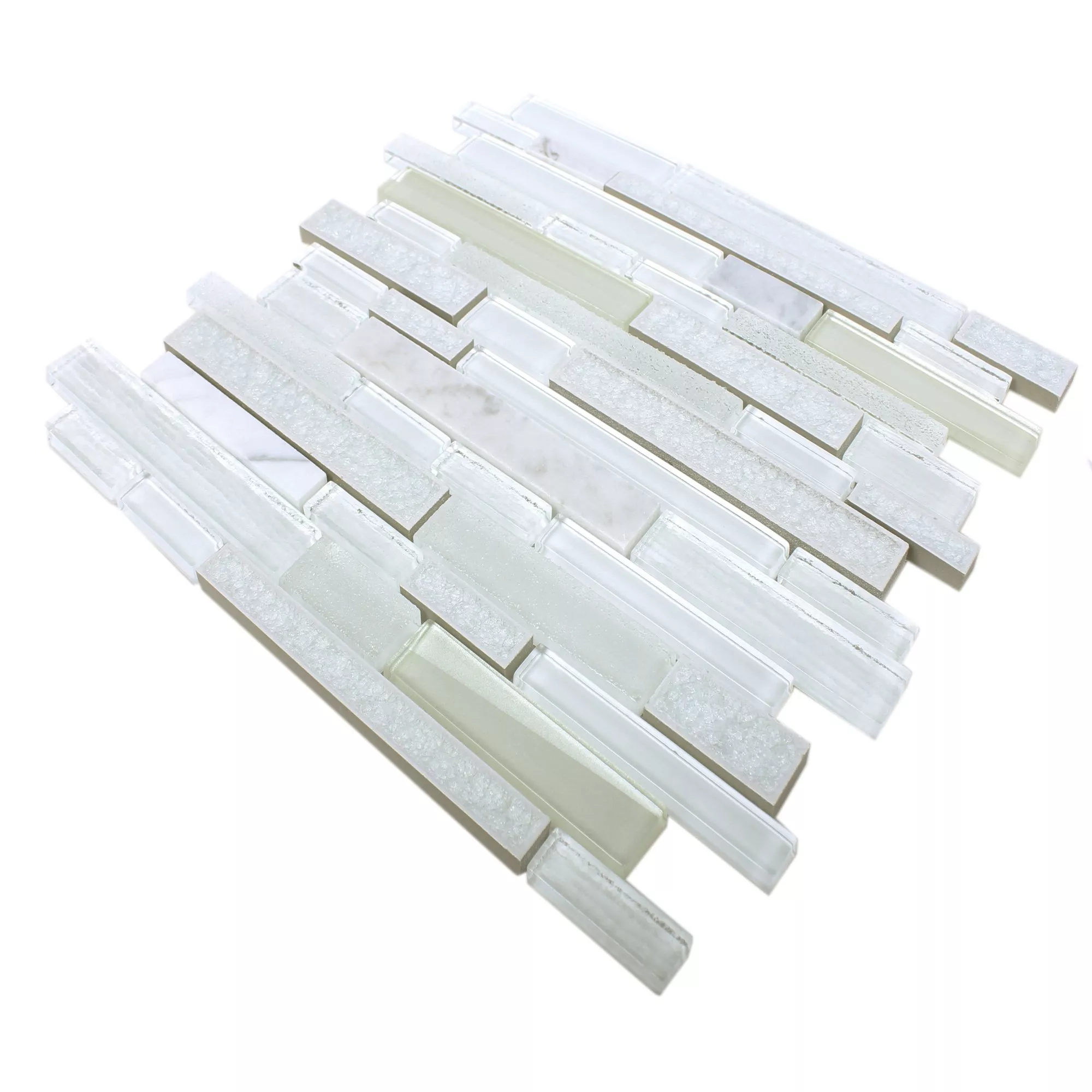 The clear white of the tile, combined with the choice of finishes - matt, glossy, polished and textured - allows for a variety of design options ranging from modern to classic. The tile is available in various stone sizes, including 23x48 mm, 15x148 mm and 23x98 mm, which together create a harmonious and versatile mosaic image.