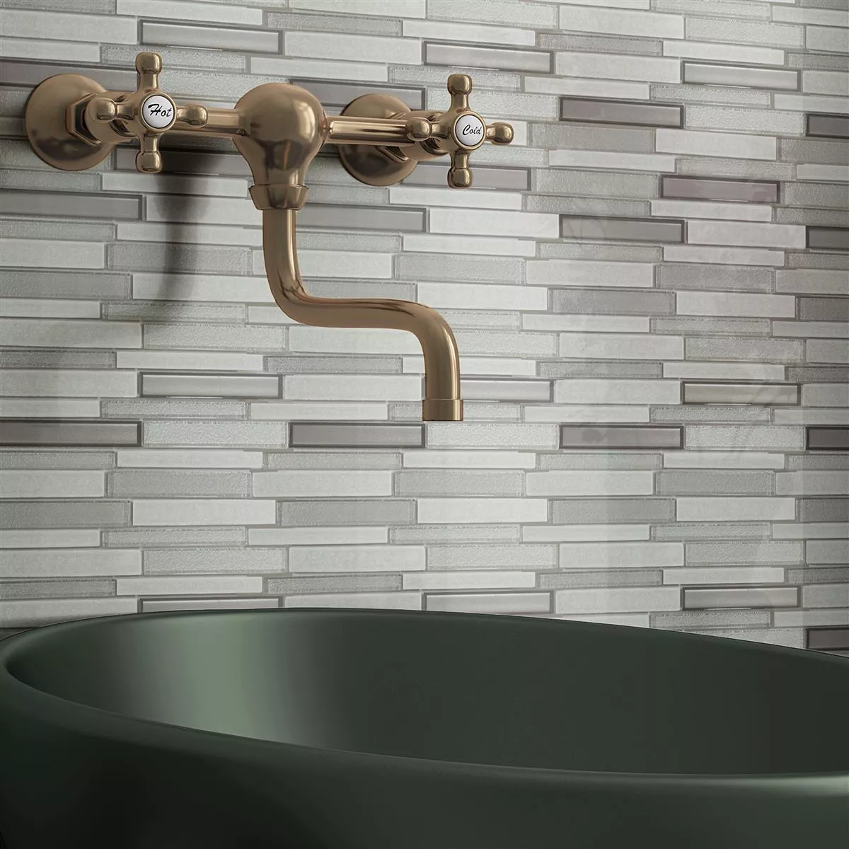 With the glass natural stone mosaic Crystal Springs Brick White you can create a convertible canvas for your design concept. Experience the timeless beauty of natural elegance and design your rooms with a touch of luxury and style.