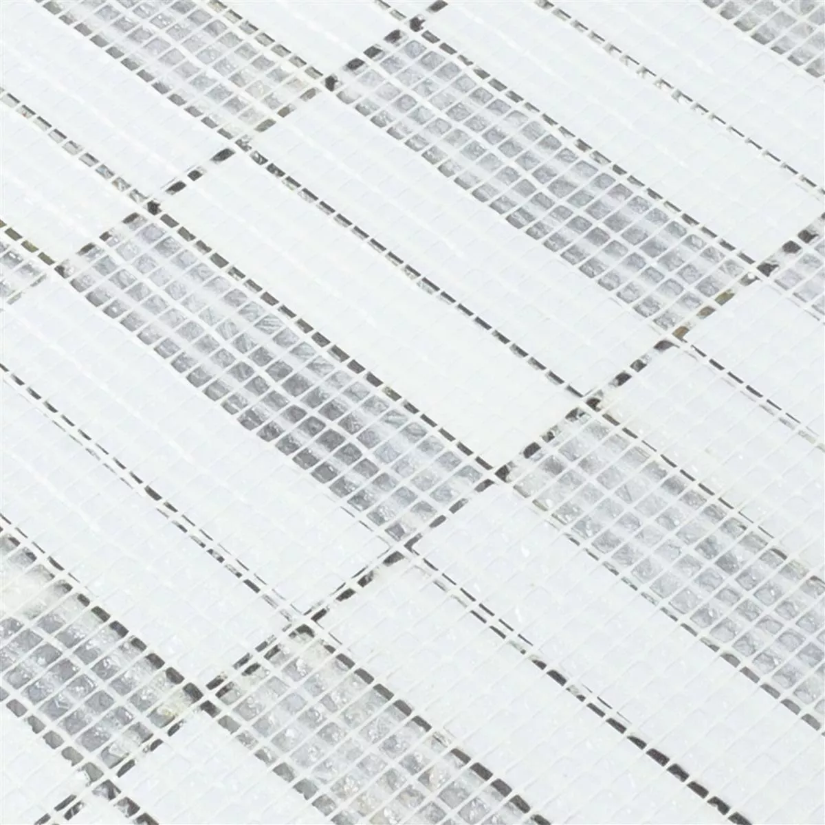 The surface, shiny and partially polished, not only gives the tiles an elegant shine, but also emphasizes the natural beauty of natural stone and glass. The rectangular and rod-shaped format, combined with a tile/mat size of 29.8x29.8cm and a thickness of 8mm, allows for versatile use.