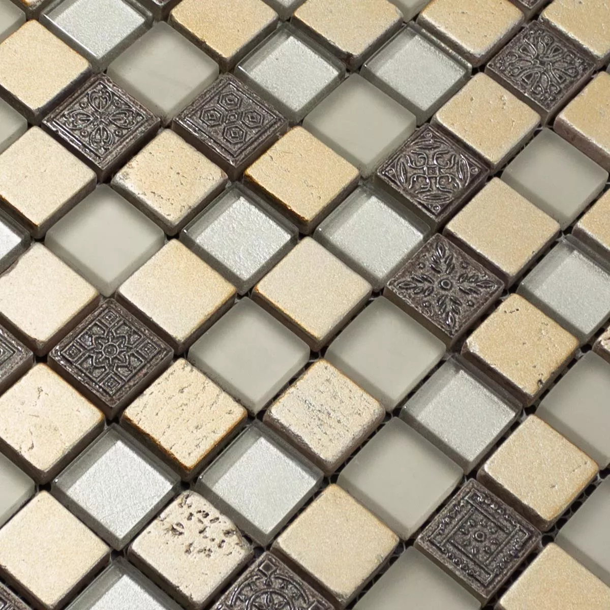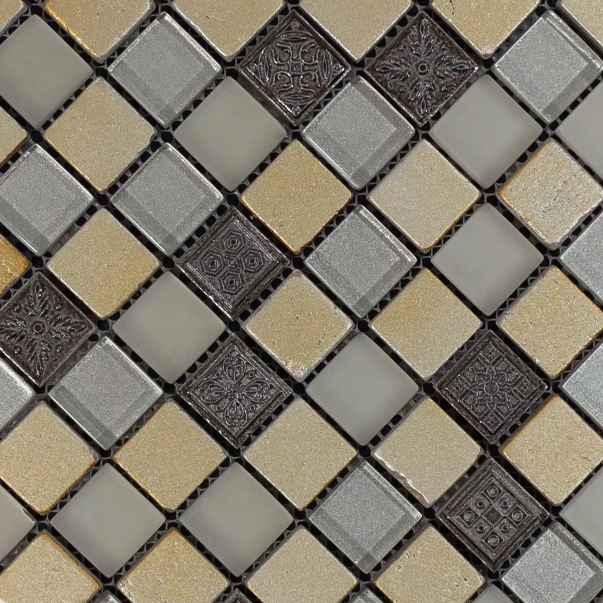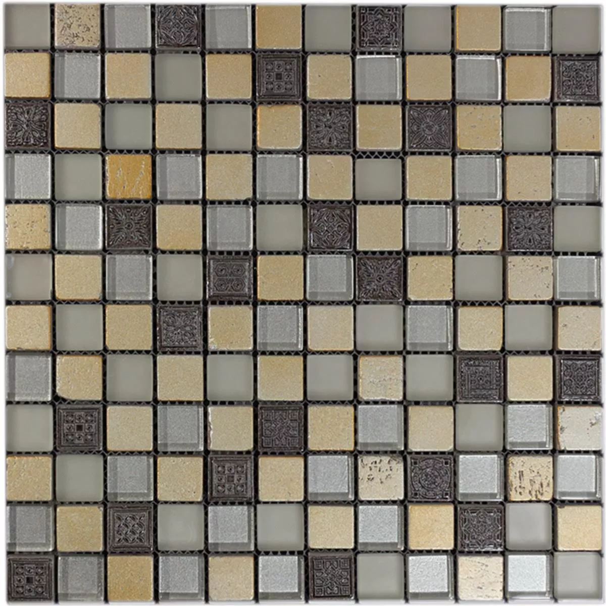 Glass Natural Stone Mosaic Tiles Shibuya Gold Beige Brown