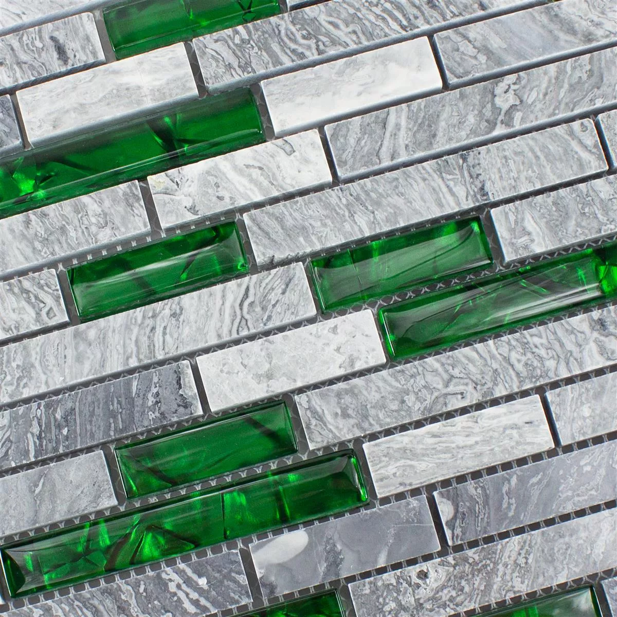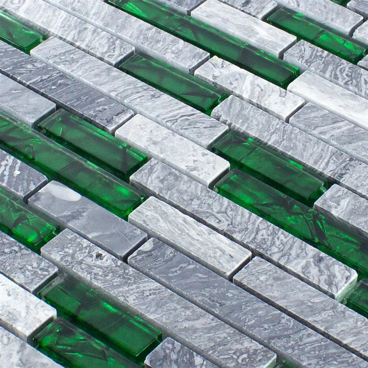 Glass Natural Stone Mosaic Tiles Sinop Grey Green Brick