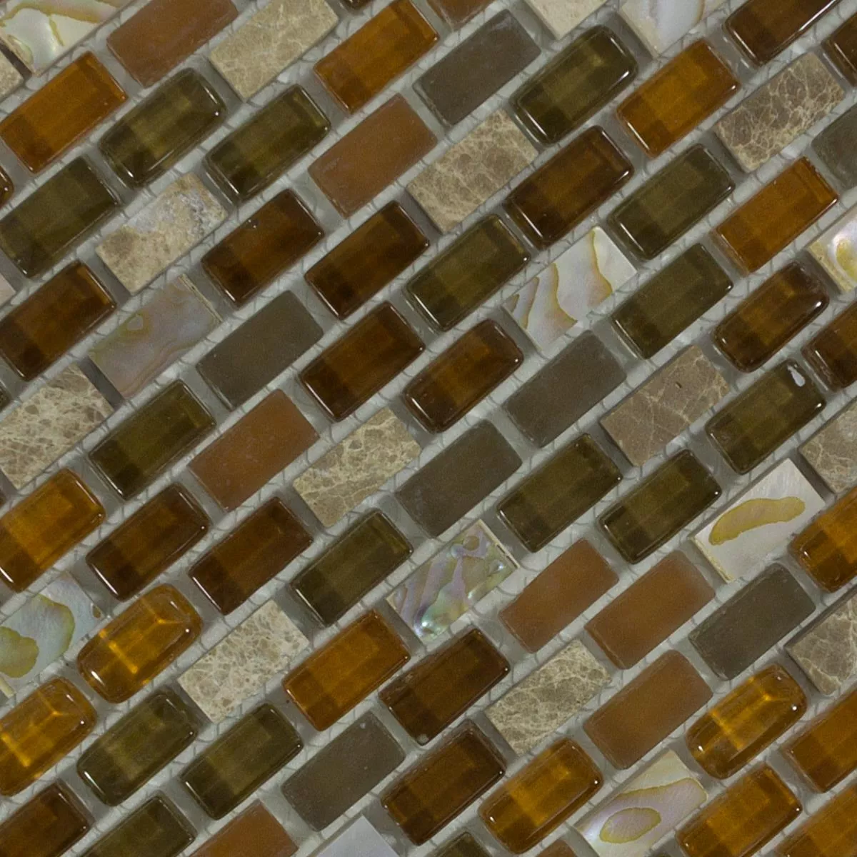 Glass Natural Stone Mosaic Zafferana Brown Beige