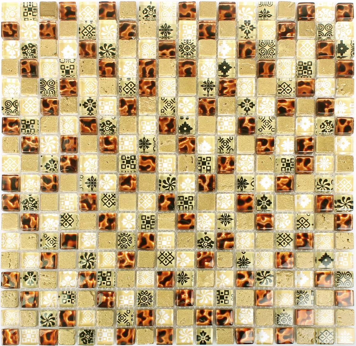 Glass Resin Mosaic Tiles Diemel Beige Red