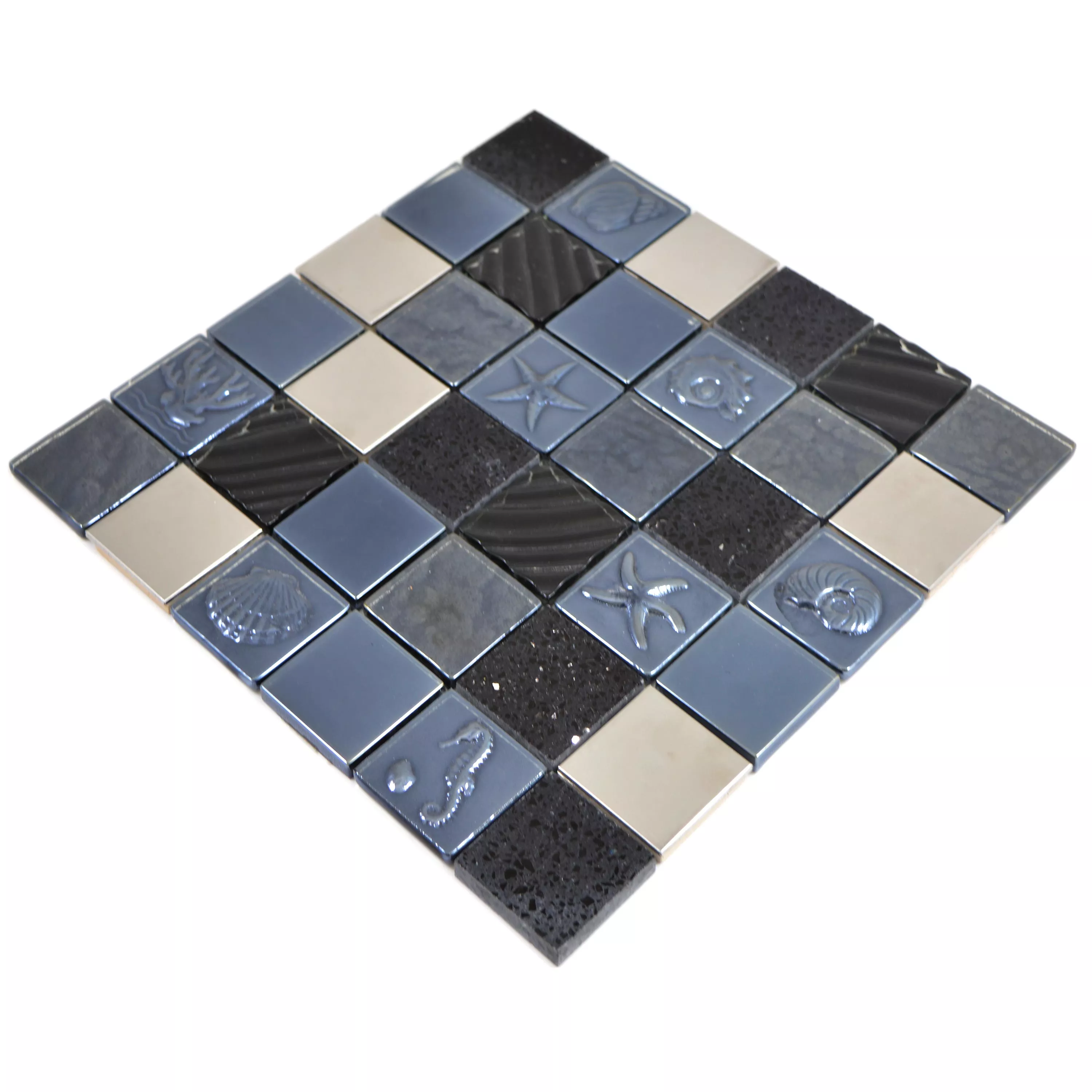 Glass Stainless Steel Natural Stone Mosaic Emporia Black Silver