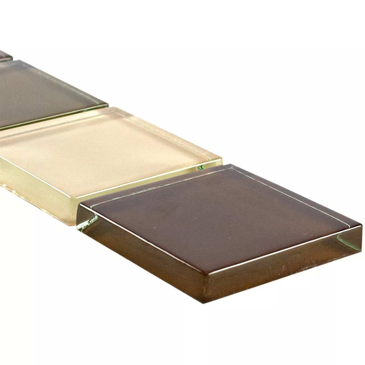 The glass tile border Exira Brown Beige is not only an aesthetic enrichment for every room, but also offers a number of practical properties. Thanks to the glass material, the tiles are easy to clean and easy to maintain. They retain their glossy finish even after prolonged use, which contributes to their long-lasting beauty.