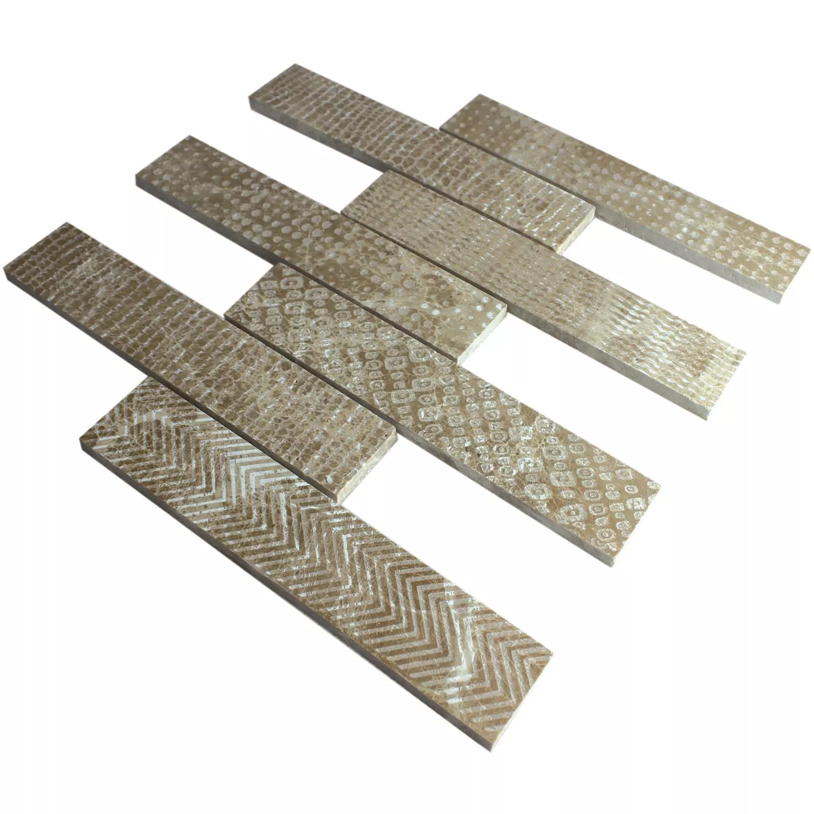 Every tile and every mosaic have different requirements for trimming, laying and und processing due to individual material characteristics and usage conditions. Please ask a local expert for correct and secure laying of your mosaics or tiles. We are not liable for unprofessional usage and faulty workmanship of constructions materials.