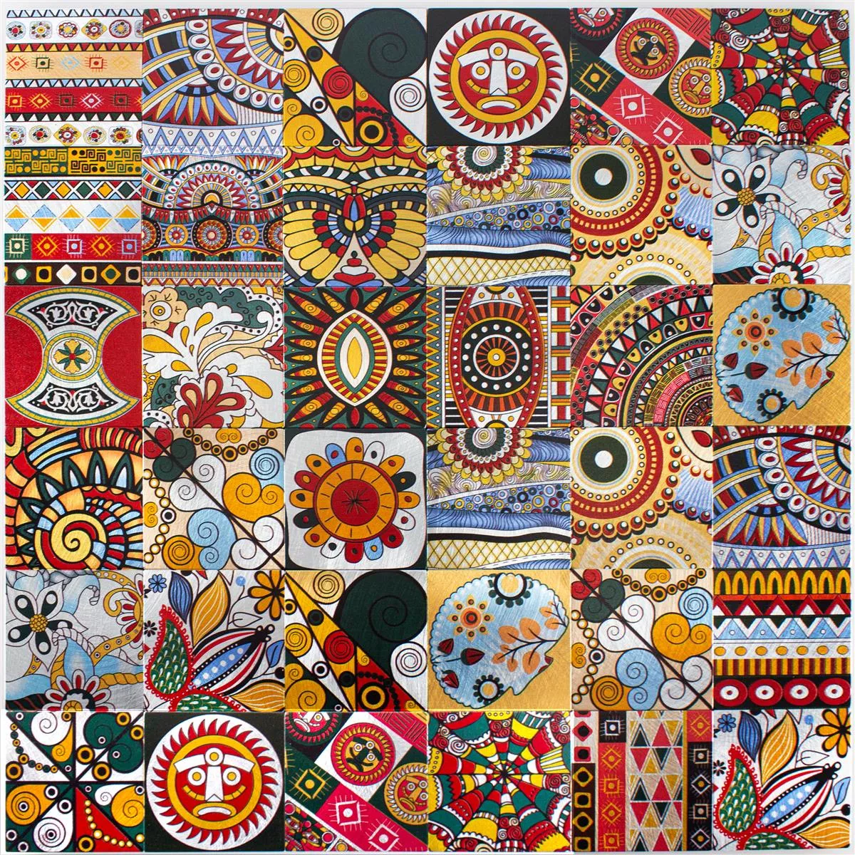 With its striking square format and bright colors, the "AyBatur" mosaic brings a creative and lively atmosphere to any room. It is the perfect choice for anyone looking for a simple yet stylish solution to enhance their walls in a retro or vintage style.