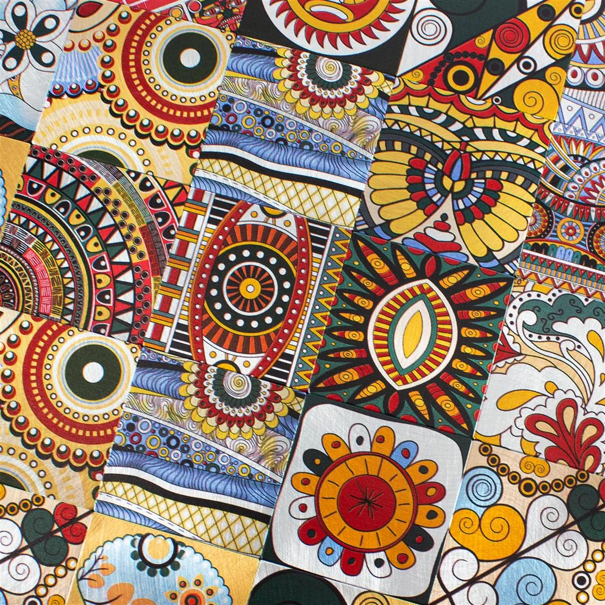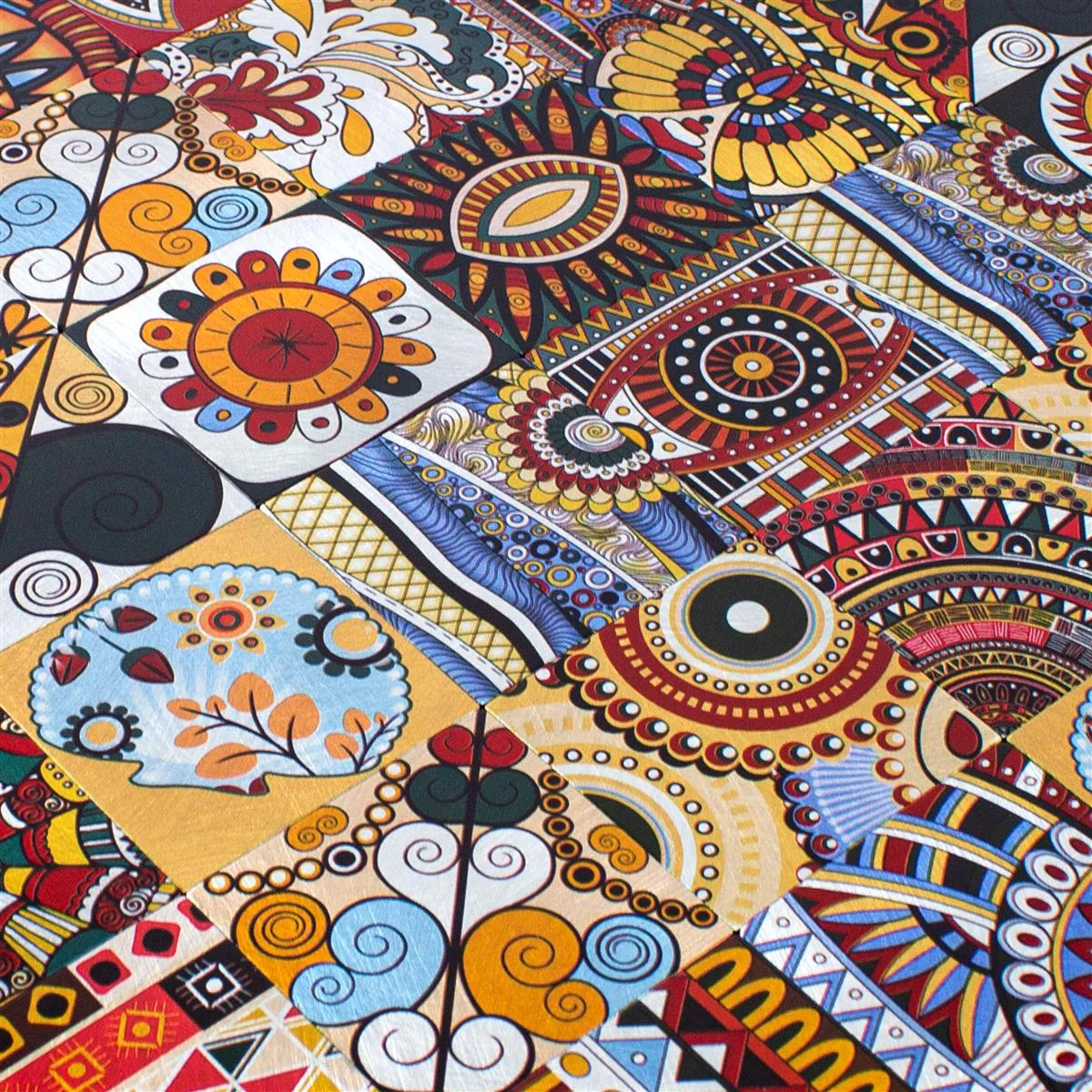 The "AyBatur" mosaic in bright colors combines retro and vintage designs with modern functionality and easy installation. Made of aluminum and metal, this mosaic offers a robust and durable solution for wall cladding in various areas. The matte surface gives the room a subtle, yet striking look that fits perfectly into both modern and classic interior styles.