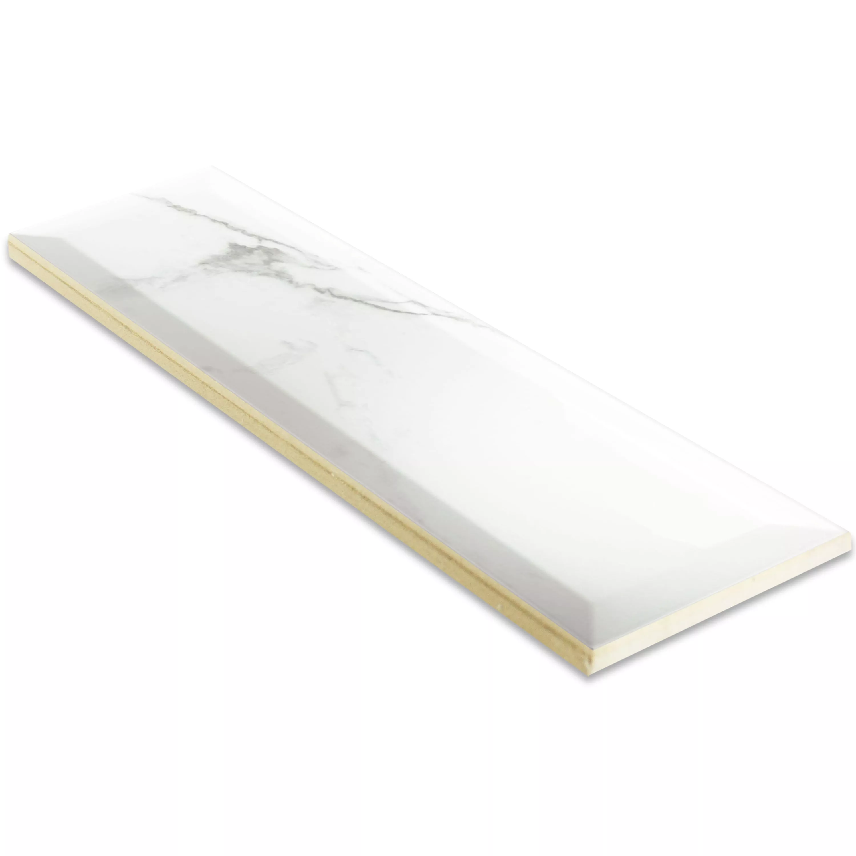 Metro Wall Tiles Girona Marble Optic Facet Blanc Glossy 10x30cm